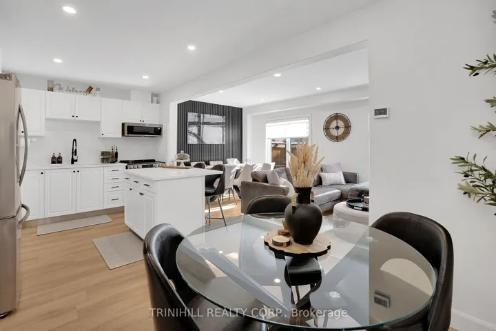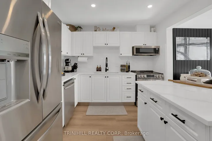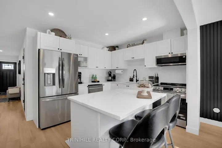 +"PublicRemarks": "Welcome to this beautifully upgraded townhome in the thriving community of Alliston! Located in a family-friendly neighbourhood, this move-in-ready home sits on a fully fenced lot and offers a bright, open-concept layout ideal for first-time buyers or young families. Enjoy a close proximity to schools, shops, restaurants, Stevenson Memorial Hospital, parks, walking trails, an off-leash dog park, Alliston's charming downtown, and Nottawasaga Resort Golf Course. Exceptional curb appeal showcases a hardscaped front yard with striking 6-foot natural stone steps, a brick and vinyl exterior, a welcoming porch, and an attached one-car garage with added mezzanine storage. The single-wide driveway parks two vehicles, while the fully hardscaped backyard provides a low-maintenance outdoor space perfect for relaxing or entertaining. Inside, the sun-filled main and second floors feature luxury vinyl flooring, smooth ceilings, pot lights throughout, updated 6" baseboards, and refined window and door trim. Stylish accent walls add warmth and character. The stunning optional eat-in kitchen is equipped with brand-new stainless steel appliances, Calacatta quartz countertops, a matching backsplash, and a large freestanding centre island with breakfast bar seating. The adjacent room provides ample space for dining and 2-peice powder room completes the main level. Upstairs, the updated oak staircase with rod iron pickets leads to a spacious primary bedroom with double-door entry, walk-in closet, and a 3-piece ensuite. Two additional bedrooms share a 4-peice bathroom. Custom zebra blinds are installed throughout, with blackout blinds in the bedrooms. The basement includes laundry, a rough-in bathroom, and endless potential to create your ideal space."