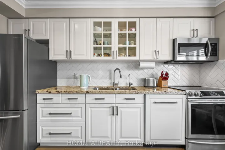 +"PublicRemarks": "Market Lane Executive Townhome!Live in a spacious 3-bedroom townhome at the price of a condo in one of Vaughan's most sought after communities. This move in ready well kept home features modern updates and finishes throughout, offering a bright open-concept layout designed for today's lifestyle.Located in the heart of Market Lane, this incredible unit is just steps to shops, cafés, restaurants, parks, and convenient transit. The updated kitchen showcases stone countertops, upgraded cabinetry with lighting, stainless steel appliances, stylish backsplash, upgraded flooring, and modern fixtures. Both bathrooms have been fully renovated with upgraded vanities, frameless glass shower doors, modern tiles, lighting and fixtures.The home offers three bedrooms , two upgraded bathrooms, hardwood flooring throughout, crown moulding, pot lights, dimmers, neutral paint, and built-in storage. A bright living and dining area is filled with natural light and walks out to a private updated terrace, perfect for morning coffee or evening relaxation.Additional features include a finished basement for extra living space, upgraded laundry room with front-load washer and dryer, central vacuum, smart thermostat, video doorbell, LED lighting and upgraded stair railings. Enjoy the convenience of two parking spots (garage and driveway) in a quiet, well maintained complex.Ideal for first-time buyers, downsizers, or investors seeking low maintenance living in an unbeatable location.Location. Lifestyle. Value. This home will not disappoint!"