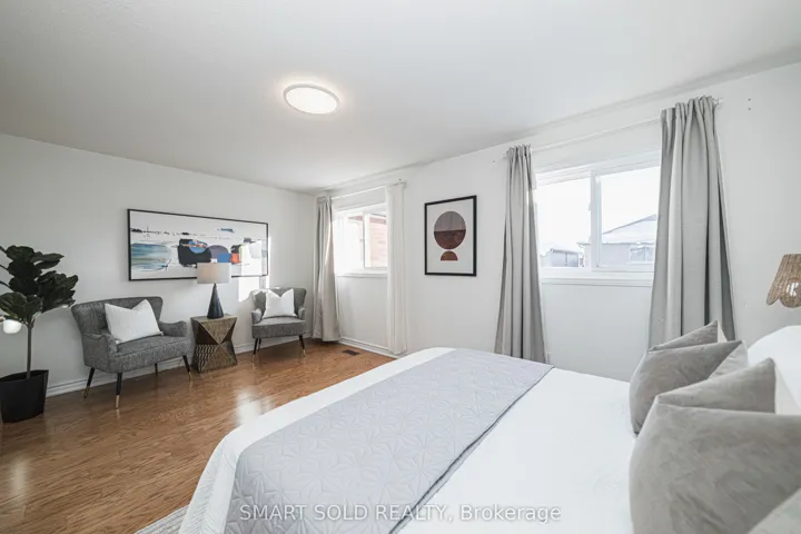 +"PublicRemarks": "Welcome to this beautifully upgraded executive townhome. Located in a highly sought-after community just minutes from Highways 403 and 407, and steps from shopping, dining, and everyday conveniences. This spacious 3-storey home boasts upgraded hardwood flooring on the main level and a solid oak staircase. The bright and open second level features a sleek kitchen with stainless steel appliances, quartz countertops and upgraded backsplash and light fixtures. The kitchen flows seamlessly into the dining and living area which boasts a stunning stone feature wall. Step out onto the balcony for a perfect extension of your living space. Upstairs you'll find two bedrooms, with the primary bedroom offering a closet and a private 3-piece ensuite. The home offers an expansive rooftop terrace an entertainers dream with sweeping views. The ground level features a dedicated laundry area, interior entry from the garage, and additional storage space."