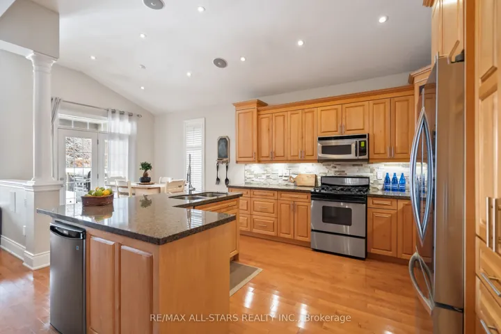 +"PublicRemarks": "This 2,827 sq. ft (per MPAC) 3-bedroom bungaloft in the gated Emerald Hills Golf Course Course community offers low-maintenance living with condo fees of $982.43/month, covering water, sewage, community snow removal and access to the clubhouse, pool, hot tub, sauna, tennis courts, exercise room, meeting room, party room with kitchen, and outdoor children's playground and MORE! The exterior features an appealing, landscaped front entry with decorative double glass doors, a transom window, and a brick-and-stone facade with stucco accents. It also includes an irrigation system, powder-coated steel fully fenced yard, a large raised deck, and a double car garage. Inside, the main floor boasts a spacious foyer and 11' ceilings. The formal living room features a bayed window wall, flooding the space with natural light. Hardwood floors, California-style shutters, and extended height interior doors enhance the main living areas. The dining room enjoys a large window, while the kitchen offers maple cabinetry, granite countertops, stainless steel appliances, including a new fridge (2024). The breakfast area has a garden door leading to the deck, and the family room includes a gas fireplace, pot lights, and a large window overlooking the yard. The spacious principal bedroom has hardwood flooring, a tray ceiling, large windows, two walk-in closets with custom organizers, a seating area, and access to the deck. The ensuite includes a soaker tub, shower, and heated floors. Additionally, there is a second bedroom, a 4-piece bathroom, and a main floor laundry room with direct garage access. Upstairs, a grand curved staircase leads to the loft bonus room overlooking the main floor. The third bedroom features a large window and closet, and a 4-piece bath completes the upper level. Other: Irrigation System (water incl in fees), Fridge, Dryer and AC 2024, Roof approx 5 years, Family Room and Principal Bedroom windows replaced, Furnace 2018."