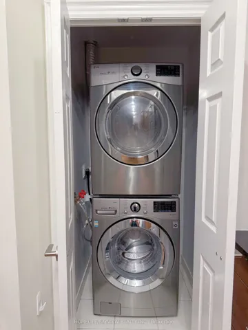 +"Inclusions": "Stainless steel appliances include 2-door refrigerator, glass-top slide-in stove, built-in dishwasher, and built-in microwave. Front-load washer & dryer included. All existing electric light fixtures and window coverings. Large locker and spacious parking spot conveniently located near the elevator."