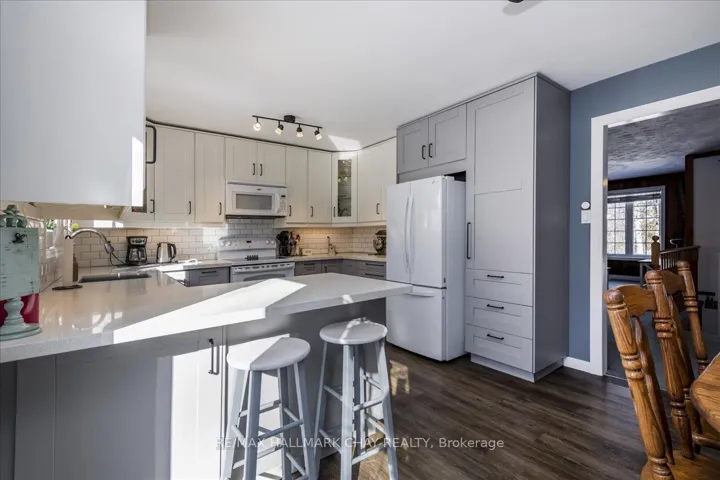 +"PublicRemarks": "Lakeside Living in Innisfil! Beautifully updated 3+1 bedroom, 2 full bathroom bungalow offering approximately 2,302 sq.ft. of finished living space and excellent in-law potential. Situated just minutes from the shores of Lake Simcoe, this home blends comfort, functionality, and a peaceful natural setting. Enjoy ample parking with space for up to 6 vehicles in the driveway plus 2 more in the double garage. The welcoming front concrete patio is the perfect spot for morning coffee or evening relaxation. Inside, a spacious living room provides an ideal gathering space for family and friends. The gorgeous custom kitchen features abundant storage, stone countertops, a backsplash, and flows seamlessly into the dining room-perfect for hosting holiday meals. A double garden-door walkout leads to the back deck, extending your living space outdoors. The primary bedroom is generously sized and offers semi-ensuite privileges, while two additional main-level bedrooms provide comfortable accommodations for children or guests. The mostly finished lower level adds versatility with an additional bedroom, a stylish full bathroom, home office, large recreation room, and a bright laundry room-ideal for extended family or multi-generational living. Step outside to a private, forest-backed backyard complete with a newer deck, fully fenced yard, vegetable garden, and concrete patio, creating a serene outdoor retreat. KEY UPDATES: Custom Kitchen, Basement Bathroom, Back Deck & Concrete Patio, Air Conditioner, Garden Doors, Front Door, and Fresh Paint. Surrounded by marinas, golf courses, parks, and essential amenities, this lovely home offers a tranquil lifestyle while remaining close to everything you need. Whether you're seeking a peaceful lakeside retreat or a flexible home for extended family, this property truly delivers."