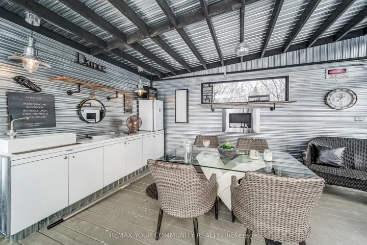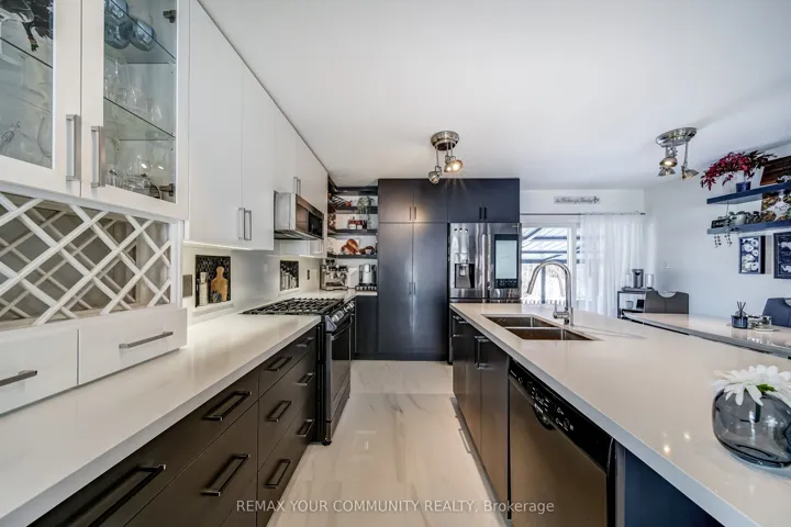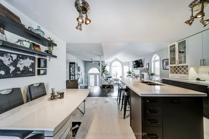 +"PublicRemarks": "First time offered!! This Ashwood Sunshine model raised bungalow offers over 2,400 sq ft of finished living space with 4 bedrooms and 3 bathrooms, set on a premium fully landscaped 60' x 107' lot with mature trees in sought-after Northdale Heights. A stamped concrete walkway leads to a custom front door with phantom screen. The open-concept main living area features hardwood floors, modern glass railings, a gas fireplace with custom cabinetry surround, and a large west-facing window that fills the space with natural light. The modern eat-in kitchen is designed for both function and style, showcasing ceiling-height cabinetry, a large pantry, quartz countertops, and a central island. The main floor primary suite includes a walk-in closet and a 4-piece ensuite with an oversized soaker tub. Three additional spacious bedrooms offer large closets and abundant natural light. The fully finished lower level provides bright, versatile living and entertaining space with large windows, a gas fireplace, and a wet bar. The lower-level bathroom features a modern curbless shower with full-body shower column and dual niches, offering both accessibility and contemporary design. Step outside to a private backyard retreat ideal for entertaining or relaxing. Enjoy the covered deck with outdoor kitchen, including built-in gas BBQ, side burner, refrigerator, and a 6-person hot tub. A separate 3-season lounge features a glass garage door and 3-piece door system for open-air enjoyment. The fully fenced backyard is landscaped with mature gardens and stone interlock for low-maintenance living. The oversized 2-car garage offers interior access, a separate gas heater, storage loft, golf locker, and shelving. The driveway accommodates 4-5 vehicles with no sidewalk. A rare opportunity to own a modern, upgraded home close to golf, Lake Simcoe, schools, and shopping. Move in and enjoy."
