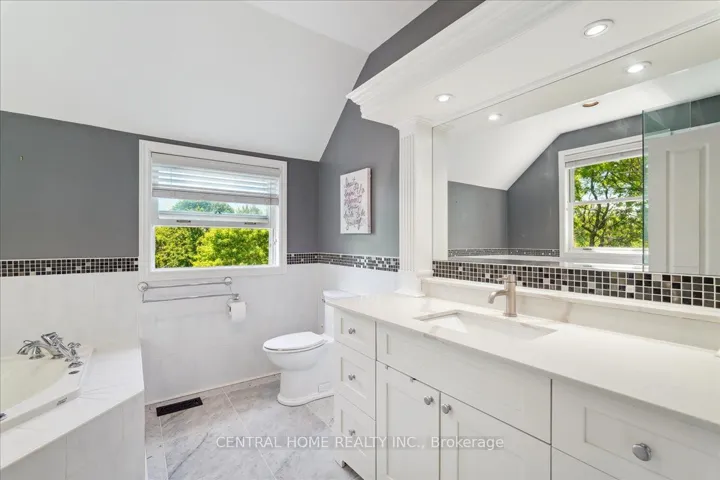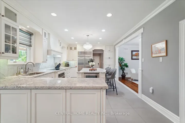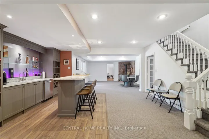 +"PublicRemarks": "Nestled within tranquil natural surroundings, this exceptional custom-built Victorian estate sits on 1.24 acres and offers a rare blend of elegance and privacy. A picturesque private pond, home to colorful koi and abundant bass, invites year-round enjoyment-from peaceful fishing to winter ice skating. Expansive grounds and wrap-around decks showcase sweeping views in every direction, creating an ideal setting for outdoor living. Inside, the beautifully updated kitchen features a large centre island, breakfast area, and premium Miele and Wolf appliances, flowing seamlessly into inviting living spaces including a warm family room and a sun-filled sunroom perfect for birdwatching. Designed with comfort in mind, the home offers dual staircases for added privacy, three generous ensuite bedrooms, and two additional guest rooms. The walk-out basement elevates the lifestyle experience with a bar, recreation areas, gym, and sauna, making it an entertainer's dream and a private retreat all in one."