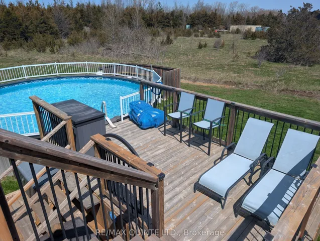 +"PublicRemarks": "Experience the perfect blend of modern luxury and rural serenity in this stunning 2014-built bungalow, situated on just under 6 sprawling acres only 8 km from the heart of Picton. The open-concept main floor features a chef-inspired kitchen with sleek quartz countertops and a layout designed for effortless entertaining. This level offers three spacious bedrooms and two full bathrooms, highlighted by a sophisticated primary suite featuring a large vanity, custom walk-in tiled shower, and a heated towel rack for a truly curated spa-like experience. Providing ultimate peace of mind for country living, the home is equipped with a Generac backup generator system that services half the house, ensuring essential power and comfort regardless of the weather. The fully finished lower level provides even more versatile living space, including a convenient half-bath and the potential for a fourth bedroom or home office. Step outside to your private outdoor oasis, where multiple tiers of custom decking seamlessly integrate with a refreshing saltwater above-ground pool. This expansive backyard setup is the ultimate venue for entertaining, offering an elevated platform for large summer gatherings or quiet evenings overlooking your massive acreage in total privacy. Combining modern efficiency with the peace and quiet of the County, this move-in-ready property is the ultimate retreat."