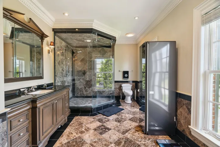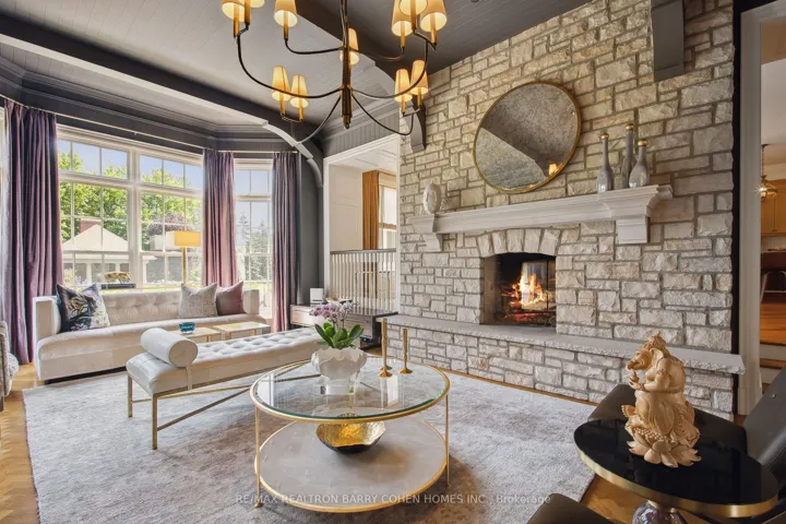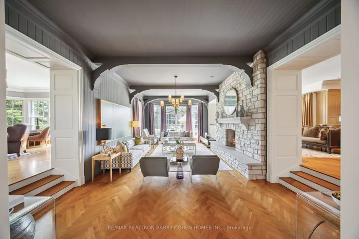 +"PublicRemarks": "Exquisite Georgian-Inspired Custom Estate Set Within The Coveted Fairfield Estates, Gracefully Positioned On A Premium Corner Parcel. Crafted With A Timeless Brick And Indiana Limestone Façade, Framed By Professionally Curated Grounds Featuring Mature Trees And Impeccably Manicured Gardens. Features '24 Redesigned And Constructed Lower Level, Brick And Indiana Limestone Exterior Framed By Impeccably Landscaped Gardens Complete With Mature Trees And Lush Manicured Gardens That Surround The Entire Property. Residence Features 20-Car Private Drive & 4-Vehicle Garage Equipped With 2 Ev Charging Stations. Main Foyer Leads To Stunning 2 Storey Entrance Hall, Main Floor Office/Library, Elegantly-Appointed Principal Rooms With Oak Hardwood Floors, Custom Crown Moulding, Exceptional Millwork, And Integrated Speakers Throughout. Sunken Great Room With Soaring Ceilings And Floor-To-Ceiling Double-Sided Wood Burning Fireplace With Stone Surround. Gourmet Kitchen Features A Large Central Island, Viking Professional Appliances, Breakfast Area, Sitting Area With Fireplace, Servery & Walk-Out To Outdoor Living And Dining Area. Primary Suite Is The Ultimate Retreat Featuring Custom His & Hers Walk-In Closets Plus His & Hers Ensuites. Upper Level Boasts 4 Additional Spacious Bedrooms, Each With Their Own 4-Piece Ensuite, Upper Level Family Room And 2nd Office/Meditation Room. Lower Level Features An Enviable Custom 350+ Bottle Wine Room, Wet Bar With Dual Zone Temperature-Controlled 78 Bottle Wine Fridge With Seating Area, Lounge, Theatre with 100" Screen/Projector, Fitness Room Complete With Separate Spa And Sauna Plus Shower, Nanny Suite With 3-Piece Ensuite & Lower Level Laundry. Sprawling Rear Gardens Feature Salt Water Pool With Loggia, Spa, Covered Outdoor Living And Dining Area, And Multiple Entertaining Spaces. Located In One Of York Region's Finest Neighbourhoods, Near Top-Rated Private Schools, Award-Winning Golf Courses & Conservation Areas."