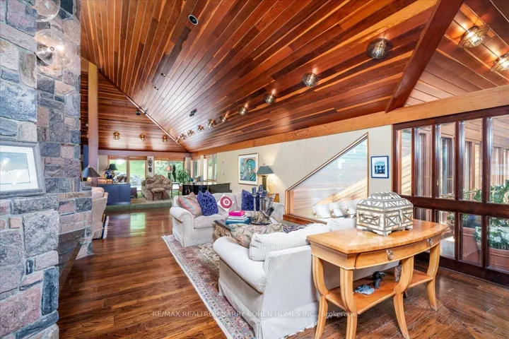 +"PublicRemarks": "A Rarely Offered 15,000Sq Ft Prestigious Estate On An Exclusive Cul-De-Sac Bordering Aurora's Exclusive Beacon Hall Golf Club. Nestled Amid A Premium 4-Acre Lot! The Property's Severance Potential Provides An Added Investment Opportunity. The Existing Estate Is An Architectural Marvel. Designed By Famed Architectural Firm Laszlo Nemeth Associates & Features Outstanding Indoor & Outdoor Entertaining Spaces Including Covered Outdoor Kitchen W/Multiple Terraces, Majestic Lawns & Forests, Plus A Bridge Leading To The Tennis Court & Tennis Pavillion. An Additional Outdoor Hot Tub Sits Beside The Swimming Pool, Highlighted By A Cascading Waterfall Feature. The Great Rm Centres Around A Striking 20ft+ 4-Sided Floor-to-Ceiling Stone Fireplace Crowned By Vaulted Ceilings & Surrounded By Wall-To-Wall Windows W/Multiple. A Large Bar, Sunken Billiard Rm, Family Rm, Grand Dining Rm & Gourmet Kitchen Complete The Main Floor Entertaining Spaces. Main Floor Primary Suite Boasts His & Hers Dressing Rooms, Spacious 9-Piece Ensuite & Private Stair To The Indoor Pool Complex Complete W/ Grotto Hot Tub W/Waterfall, Walkout To Rear Gardens, Full Service Bar & Spa Zone Featuring Marble Steam Room, Sauna, Shower Rm & Exercise Room. The Main Floor Bedrm Wing Features 2 Additional Bedrooms W/Ensuites, Spacious Office W/ Wet Bar & Powder Rm, Games Rm, Laundry, Guest Wing W/2 Bedrms Plus Ensuites. The Top-Floor Office, Complete W/An Adjacent Washroom, Presents An Idyllic Workspace Filled W/ Natural Light While Also Offering Excellent Potential To Be Converted Into An Additional Bedrm. Included Is A 1-Bedrm Self-Contained Apartment W/Separate Entrance For In-Laws Or Staff Including Kitchen, Bathrm & Living Rm. A Rare Offering W/Unmatched Amenities, Luxurious Privacy, Investment & Development Potential, Conveniently Located Close To St. Andrew's College, St Anne's School, The Country Day School, & Villanova. Steps to Beacon Hall Golf Course, Close To Magna Golf Club & Several Club Link Courses."