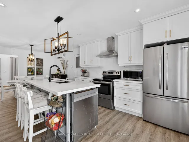 +"PublicRemarks": "Fabulous 3-bedroom two bathroom home, completely gutted and beautifully renovated throughout. Featuring a modern quartz kitchen with seamless backsplash, double undermount sink, built-in dishwasher, glass-top stove, and a one-year-old fridge/freezer. Thoughtfully designed with built-in spice drawers, a charming coffee nook, and integrated garbage and recycling bins. Pot lights illuminate the home, complemented by large picture windows that fill the space with an abundance of natural light.Quality workmanship is evident throughout. The primary bedroom is surrounded by numerous windows, creating a bright and airy retreat. The spacious bathroom offers an oversized tub, delivering spa-like comfort and relaxation.Step outside to a captivating backyard oasis with an expansive deck - perfect for entertaining or unwinding.Situated on a quiet dead-end street, just minutes to the corner park, Lake Simcoe beaches, marina, Pines of Georgina Golf Course, schools, and all amenities. This little Shangri-La truly feels like home."