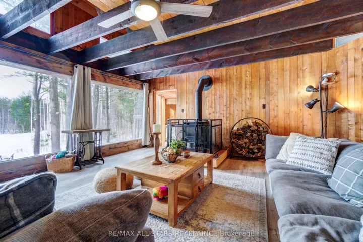 +"PublicRemarks": "Tucked well back from the road on 20 private acres, this secluded country retreat designed by local architect Jerome Markson offers the perfect balance of peace and proximity, just 14 minutes to Uxbridge and 8 to Sunderland. A tree-lined drive leads to a thoughtfully updated 2+2 bedroom home featuring open concept living anchored by a wood stove, a renovated kitchen, and walkouts to a covered 3-season room and multiple decks. The principal bedroom enjoys its own private deck overlooking the property. An upper-level bedroom and office that provides a flexible space for working from home or guest overflow, while the finished lower level offers two additional bedrooms with bright above ground windows. Approximately $250,000 has been invested over the past six years, including a metal roof, renovated kitchen and bathrooms, updated plumbing, majority electrical updates, finished basement, rebuilt 3-season room, new well pump, UV filtration system, replaced main overhead power line to the house (including transformer and hydro poles) and more. The land is the true highlight: a pond, maintained walking trails, garden area, play space and backing farmland create an exceptional setting for year-round enjoyment. Enrolled in the Managed Forest Program for significant property tax savings, and high speed fiber (Rogers) available. A rare opportunity to own a private escape without sacrificing convenience."