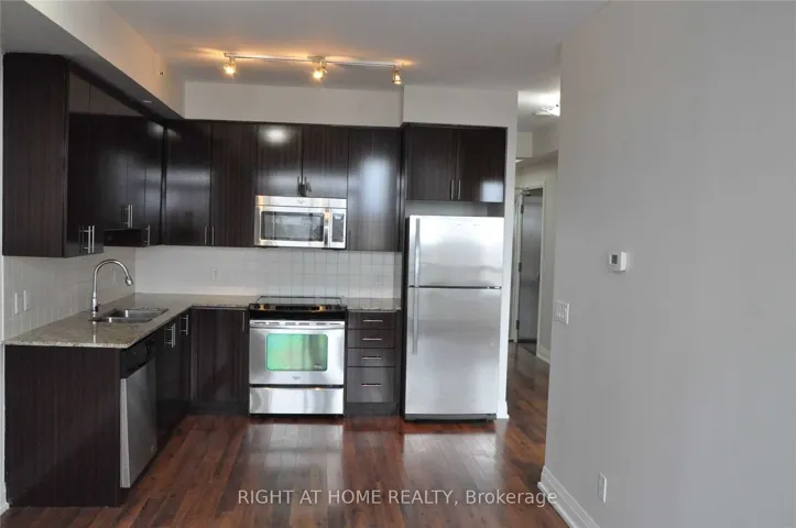 +"PublicRemarks": "Welcome to this bright and well-maintained 1 Bedroom + Den suite offering functional, modern living in one of Vaughan's most desirable condo communities. Featuring 9-ft smooth ceilings, laminate flooring, and a thoughtfully designed open-concept layout, this home offers the perfect blend of style and comfort. The spacious living and dining area opens to a private balcony with open views, creating an inviting space to relax. The contemporary kitchen features stainless steel appliances, dark cabinetry, and generous granite counter space - ideal for both everyday cooking and hosting guests. The spacious bedroom includes a walk-in closet, while the versatile den is perfect for a home office or guest area. A large bathroom with excellent storage, along with a new full-size in-suite washer and dryer, adds everyday convenience rarely found in comparable units. One parking space is included and conveniently located close to the elevator for added everyday ease. Building Amenities: 24-hour concierge & security Indoor pool & sauna Fully equipped fitness centre. Media room Party/meeting room. Tenant pays only hydro, internet & tenant insurance. Ideal for professionals seeking upscale, low-maintenance living. Conveniently located near parks and playgrounds, with everyday essentials just minutes away - including banks, Walmart, No Frills, Winners/Home Sense, and Shoppers Drug Mart - plus excellent schools, shopping, dining, transit, and Hwy 407, offering easy access to Toronto."
