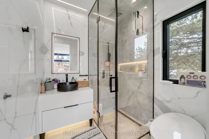 +"PublicRemarks": "Stunning custom-built luxury residence showcasing exceptional craftsmanship, premium finishes, and advanced smart home technology throughout. Designed for elegance and functionality, this remarkable home features large-format 5' x 10' Italian porcelain slabs creating a seamless interior, along with a custom Italian kitchen offering sleek cabinetry, high-end finishes, and fully integrated appliances. A private elevator provides convenient access to all levels. Enjoy heated floors in all bathrooms, two laundry rooms including one on the second floor, and a luxurious primary suite featuring two ensuite bathrooms for added comfort and privacy. The second floor is enhanced with rift-cut white oak doors, custom wall units, and built-in beds for a cohesive designer look. The finished basement includes a spa-inspired bathroom with Jacuzzi tub and steam shower. Smart home features include Somfy motorized window coverings and a Control4 automation system managing lighting, sound, climate, blinds, security cameras, and fingerprint entry. Two skylights bring in natural light and include ceiling-mounted lift systems. Outdoor spaces are ideal for entertaining, featuring a heated driveway, heated backyard deck, main floor balcony, and heated flooring on the main floor and basement. Mechanical systems include three boilers, two furnaces, and two A/C units. The private backyard offers a spectacular 44' x 18' infinity pool with Pentair pump, LED lighting, saltwater system, separate pump, and hot tub. Additional highlights include a 2-car garage with EV chargers, silent garage door opener, automated gates, iron fencing, thermally treated wood balcony ceilings, glass railings, sprinkler system, and two electrical panels. An exceptional property combining luxury, technology, and thoughtful design, perfect for everyday living and entertaining."