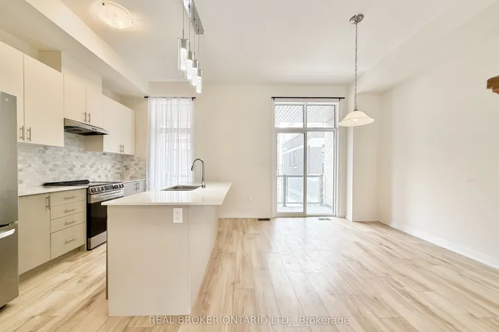 +"PublicRemarks": "Stunning executive freehold townhome in the highly desirable Ivylea community. This bright and spacious three-storey residence offers 3 bedrooms plus a generous den - ideal for a home office or easily adaptable as a fourth bedroom - along with a rare oversized double garage.The open-concept main floor showcases 10-foot ceilings, rich hardwood flooring, and an elegant oak staircase. The contemporary kitchen is beautifully appointed with quartz countertops, a centre island, and a walkout to one of two private balconies, creating the perfect space for everyday living and entertaining. The upper level features 9-foot ceilings and a thoughtfully designed layout.The primary suite serves as a private retreat, complete with a spa-inspired ensuite featuring a freestanding soaker tub, separate glass shower, and a spacious walk-in closet.Located at Leslie Street and 19th Avenue, this home offers exceptional convenience with quick access to Highways 404 and 407, public transit, parks, scenic trails, and green space. Close to top-rated schools, shopping including Costco and Home Depot, restaurants, and everyday amenities.Set within a quiet, family-friendly neighbourhood, this move-in ready home combines modern finishes, thoughtful upgrades, and a prime location - the perfect blend of comfort and lifestyle."