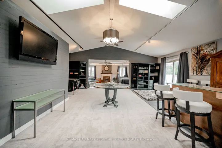 +"PublicRemarks": "MULTI-GENERATIONAL ESTATE ON 1.3 ACRES WITH OVER 8,400 SQ FT, SEPARATE LIVING QUARTERS & RESORT-STYLE AMENITIES! This exceptional property, located just outside the charming community of Stroud, offers serene country living and city convenience. This property features over 8,400 sq. ft. of finished living space, including a fully finished main house, a pool house, and separate studio space, each complete with its own kitchen. The main house features a warm and elegant interior with 5 bedrooms, 4 bathrooms, updated flooring, and a desirable layout with multiple walkouts, perfect for entertaining. The kitchen boasts butcher block counters, white cabinets, and stainless steel appliances. The second floor primary suite impresses with a private entertainment area, sitting area with a fireplace, private balcony, office area, and ensuite with walk-in closet and in-suite laundry. The lower level is highlighted by a traditional wooden wet bar and spacious recreation room. Ideal for extended family, the pool house features exotic tigerwood flooring, skylights, a wall of windows overlooking the pool, a spacious living room with vaulted ceilings and a wet bar, a full kitchen, 2 bedrooms, and 2 bathrooms. The pool house also has a 690 sq. ft. basement with plenty of storage and its own gas HVAC and HWT. The bonus studio space welcomes your creativity and offers an open-concept design. Enjoy an in-ground pool, expansive stamped concrete patio, multiple decks, and plenty of green space for family events and activities. Additional amenities include a paved area for a basketball court and an ice rink, exterior lighting, a sprinkler system, and 2 storage sheds. The property has 800 Amp service and a side gate offering access to drive to the backyard, which is the perfect spot to park the boats or toys. This multi-residential #Home To Stay is perfect for those seeking privacy and endless entertainment possibilities."