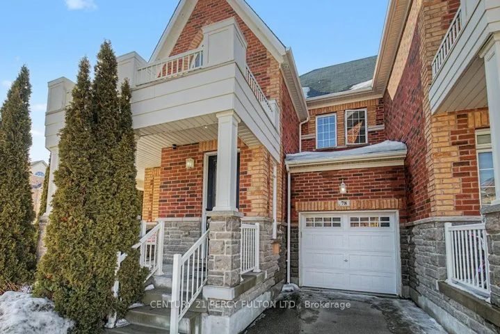 +"PublicRemarks": "Welcome to 78 Brock Avenue - an exceptional end-unit corner townhome, approximately 2200 sq ft in size, that feels like a detached home, offering 33' of frontage, a rare and highly desirable feature among row townhouses. Situated in the prestigious Berczy community (Upper Unionville), this approximately 12-year-new residence is surrounded by top-ranked schools, parks, public transit, and everyday amenities. This well-maintained home features 4 spacious bedrooms and 4 washrooms, along with a professionally finished basement. The inviting wrap-around porch enhances the home's outstanding curb appeal and creates a welcoming first impression as you approach the property. The main floor offers 9' ceilings and an abundance of natural light thanks to its corner orientation and additional windows. The customized kitchen showcases rich cabinetry, granite countertops, glass backsplash, and a generous eat-in area. The adjoining family room features a corner fireplace and provides an ideal layout for everyday living and entertaining. On the second floor, you'll find four generously sized bedrooms. The primary bedroom is highlighted by coffered ceilings, while the ensuite bath features vaulted ceilings and distinctive semi-circular windows, adding architectural character and charm. The finished basement includes an additional bedroom and a 3-piece washroom, offering flexibility for guests, extended family, or home office use. Exterior features include beautifully landscaped perennial gardens and a serene backyard pond, creating a private outdoor retreat. Located in one of Markham's most sought-after neighbourhoods, Berczy Village is well known for its highly ranked schools, including Pierre Elliott Trudeau High School, just a short walk or 2-minute drive away. This is a rare opportunity to own a premium corner property in an established, family-oriented community with great schools and amenities."