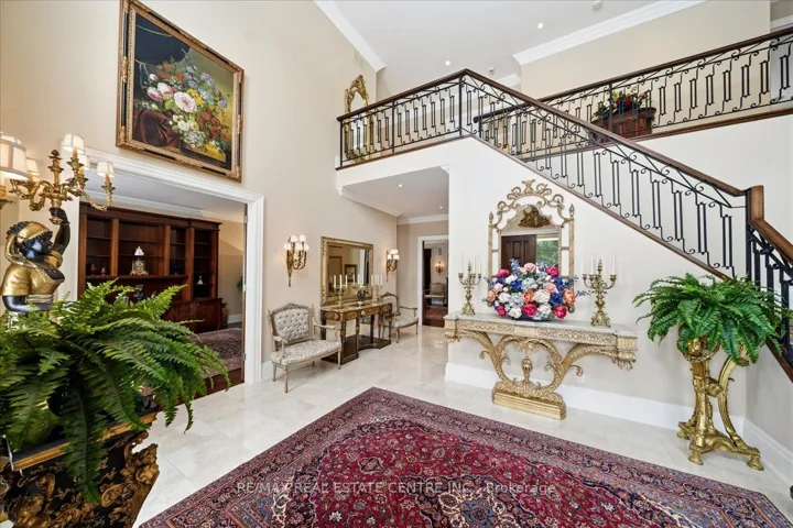+"PublicRemarks": "Exceptional estate living at 65 Kingwood Drive, a rare multi-generational residence on approx. 2.5 acres at the end of a private cul-de-sac in prestigious Kings Glen Estates. Featuring an extraordinary 671-ft frontage-the largest on the street-and backing onto Centennial Park, this property offers unparalleled privacy, lush gardens, ravine views, and natural serenity. A grand marble foyer with 20-ft ceilings and sweeping staircase introduces over 7,000 sq. ft. of elegant living space. Principal rooms showcase cherry hardwood floors, custom millwork, 9- ft walnut doors, and oversized windows with tranquil views. The approx. 500-sq.-ft. gourmet kitchen features a 45-8q.-ft. centre island, granite counters, premium appliances, and a filled breakfast area with seamless outdoor access. The home offers 5+1 bedrooms and 7 bathrooms, including a private primary retreat with spa- inspired ensuite, dressing area, and a massive terrace overlooking the ravine. (see Pics)A fully self-contained secondary suite with private entrance, living/dining area, kitchenette, bedroom with ensuite, and walkout deck is ideal for extended family or guests. Enhanced with ZON whole-home audio, in-ceiling speakers, and smart intercom, the grounds feature a roughed-in Par-3 golf area, secluded pool-ready plateau, private winter toboggan slope, and direct access to King Trails at Centennial Park. A rare opportunity combining timeless architecture, natural beauty, and functional luxury in one of King's most coveted enclaves."