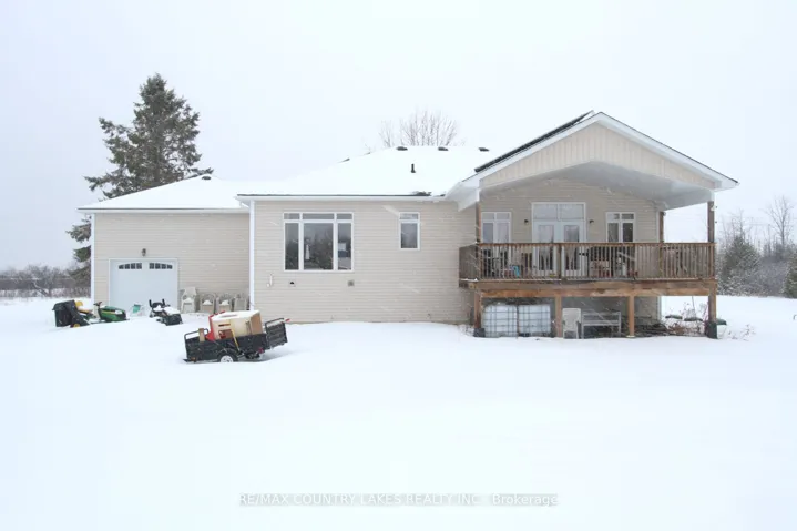 +"PublicRemarks": "Set on a stunning 10.15-acre parcel, this beautifully crafted 10-year-old custom raised bungalow offers approximately 2,200 sq ft of thoughtfully designed living space in an exceptionally private and peaceful setting. A picturesque stream meanders through the rear of the property, attracting abundant wildlife and creating a truly serene backdrop. Inside, the open-concept kitchen and living area features a striking cathedral ceiling, a central island, and a walkout to the covered rear deck - perfect for entertaining or relaxing while enjoying the natural surroundings. Hardwood flooring flows throughout the home. The layout includes a formal dining room and a spacious primary bedroom complete with a 3-piece ensuite. The unfinished basement, with its above-grade windows, provides excellent potential for future expansion. A convenient laundry room offers direct access and a walkout to the attached double-car garage. Approximately 3-4 acres surrounding the home are cleared and maintained, while the remaining 6 acres remain beautifully untouched. Ideally located with easy access to amenities and just a short 5-minute drive to Lake Simcoe, this property perfectly balances privacy, nature, and convenience."