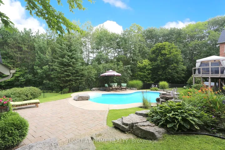 +"PublicRemarks": "Incredible setting in the highly sought after FOXFIRE ESTATES just south of Uxbridge. Welcome to your dream backyard, complete with saltwater pool, waterfall, hot tub and lower level leisure space. Walk out from two levels, seamlessly connecting the indoors into the backyard retreat, enhancing the flow of this exceptional home. Classically designed estate home blends timeless elegance with resort-style amenities. 4 bedroom, 4 bathroom (with 2 ensuites), 2 gas fireplaces, a formal dining room, separate living and family rooms, and also a separate office. Eat-in kitchen with pantry, breakfast bar, stainless steel appliances, and main floor laundry. There are 2 convenient front entrances, with the main entrance opening into a large foyer. A very spacious full walkout unfinished basement provides abundant natural light. The tranquil country porch spans the entire front of the house. A generous back deck with a charming gazebo overlooks the pool, and is perfect for entertaining, with gas BBQ hook-ups on both levels. Don't forget the private forested area for outdoor adventures. This home features extensive landscaping with several perennial gardens, beautifully maintained to be an entertainers paradise, and private sanctuary, all in one!"