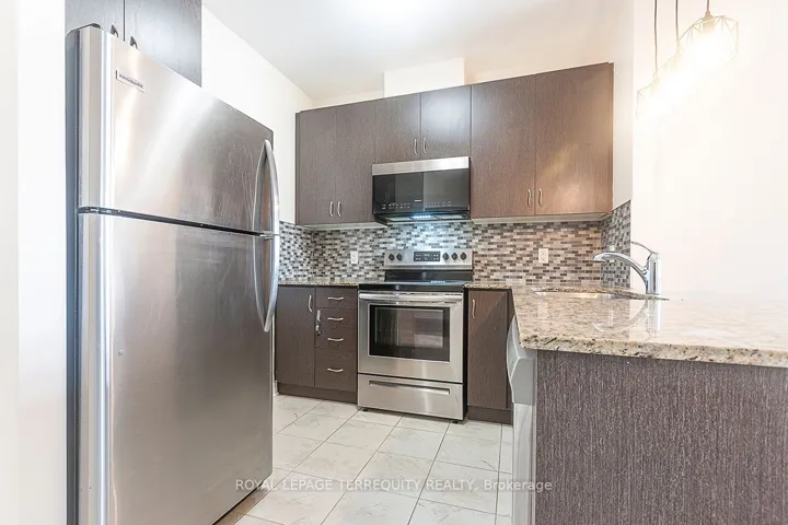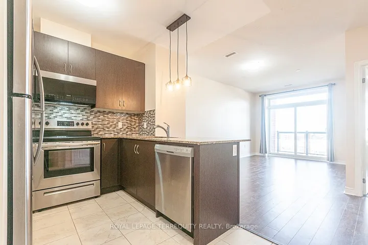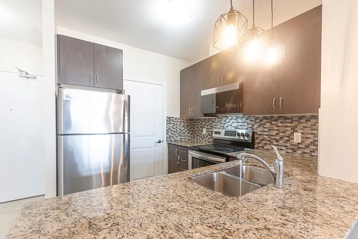 +"PublicRemarks": "Premium Location! Immaculate 1 Bedroom + Den located on the 6th floor featuring no carpet and modern finishes throughout. Conveniently situated within walking distance to shopping, Home Depot, Beer Store & LCBO, Canadian Tire, Costco, restaurants, transit, and major highways.Interior features include freshly painted walls, 9-ft ceilings, laminate flooring throughout, and a contemporary kitchen with granite countertops, breakfast bar, and stainless steel appliances. Spacious living room with walkout to an open balcony. Includes ensuite laundry, one underground parking space, and a storage locker.Building amenities include a fully equipped exercise room/gym, games room, party room, and ample visitor parking."
