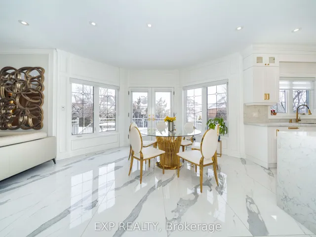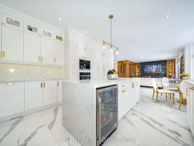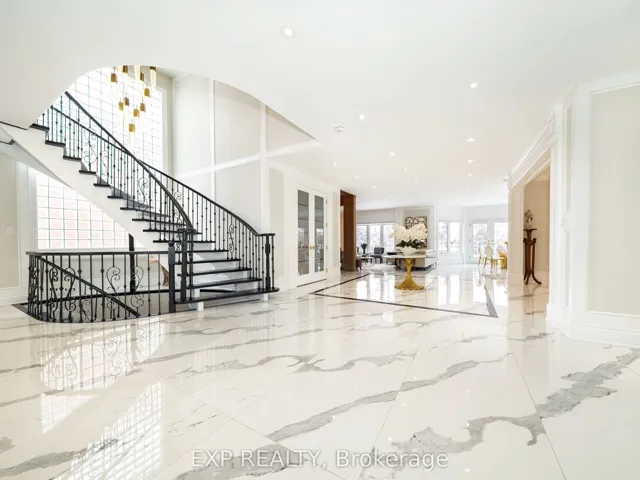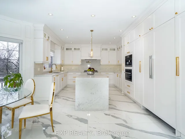 +"PublicRemarks": "An exceptional, masterfully renovated executive home in the heart of prestigious Bayview Hill, offering over 7,000 sq ft of refined living space (4,935 sq ft above grade per MPAC plus a professionally finished basement) on a premium 81.98 x 167.42 ft lot with no sidewalks. Enhanced by approximately $500,000 in interior and structural upgrades, this distinguished residence blends architectural grandeur with contemporary sophistication. A permit approved on September 11, 2024 for a potential third-car garage addition offers future expansion opportunity. The stately brick and stone façade, interlock driveway, and double garage lead to a dramatic open-to-above foyer featuring a sweeping curved wrought-iron staircase and architectural glass feature wall. The main level boasts 9-ft ceilings and a striking 2-storey cathedral ceiling in the living room. The home features oversized porcelain slab flooring, formal principal rooms, a renovated chef's kitchen with quartz waterfall island and premium built-in appliances, a bright breakfast area with walk-out to a raised deck, a wood-paneled family room, and a cozy, wood-paneled office features rich floor-to-ceiling millwork, custom built-in shelving, and ample lower cabinetry for excellent storage and organization. Upstairs, spacious bedrooms with multiple ensuites provide exceptional comfort, while the primary suite offers a custom boutique-style walk-in closet with center island and a spa-inspired ensuite with freestanding tub and glass-enclosed shower. The professionally finished basement adds exceptional versatility with an open-concept recreation area, second kitchen, 2 bedrooms, 3-piece bath, separate staircase access. Located within the top-ranked Bayview Secondary School and Bayview Hill Elementary School district, and close to parks, community center, shopping, and major highways, this refined residence presents a rare opportunity in one of Richmond Hill's most sought-after neighbourhoods."