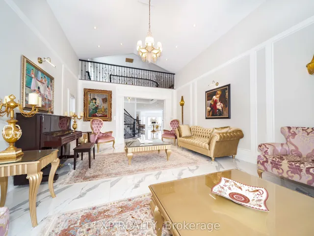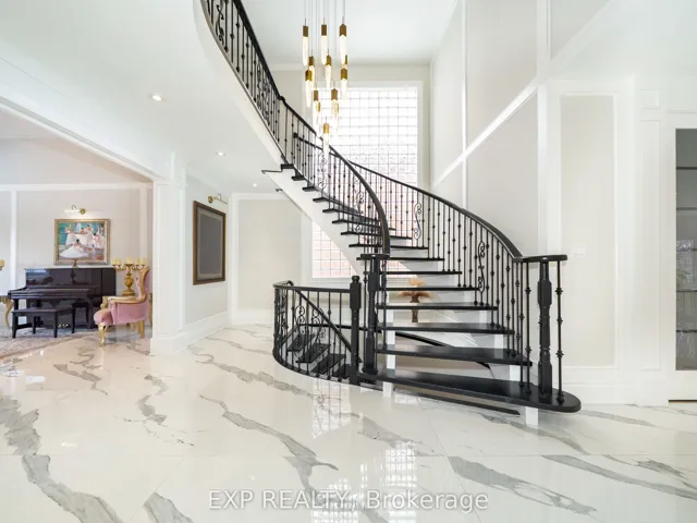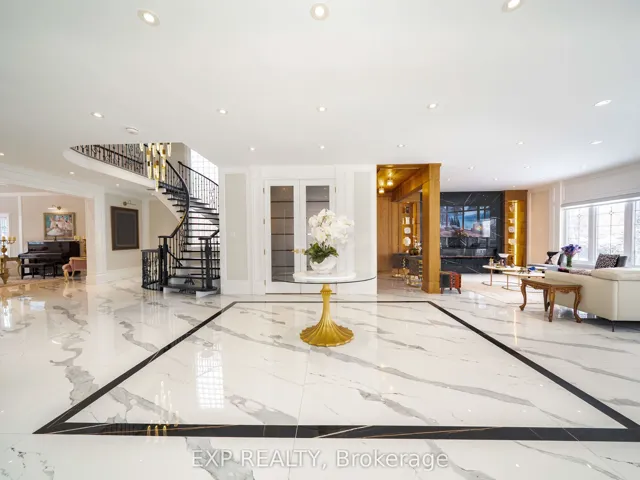 +"PublicRemarks": "An exceptional, masterfully renovated executive home in the heart of prestigious Bayview Hill, offering over 7,000 sq ft of refined living space (4,935 sq ft above grade per MPAC plus a professionally finished basement) on a premium 81.98 x 167.42 ft lot with no sidewalks. Potential for Third Car Garage. Enhanced by approximately $500,000 in interior and structural upgrades, this distinguished residence blends architectural grandeur with contemporary sophistication. A permit approved on September 11, 2024 for a potential third-car garage addition offers future expansion opportunity. The stately brick and stone façade, interlock driveway, and double garage lead to a dramatic open-to-above foyer featuring a sweeping curved wrought-iron staircase and architectural glass feature wall. The main level boasts 9-ft ceilings and a striking 2-storey cathedral ceiling in the living room. The home features oversized porcelain slab flooring, formal principal rooms, a renovated chef's kitchen with quartz waterfall island and premium built-in appliances, a bright breakfast area with walk-out to a raised deck, a wood-paneled family room, and a cozy, wood-paneled office features rich floor-to-ceiling millwork, custom built-in shelving, and ample lower cabinetry for excellent storage and organization. Upstairs, spacious bedrooms with multiple ensuites provide exceptional comfort, while the primary suite offers a custom boutique-style walk-in closet with center island and a spa-inspired ensuite with freestanding tub and glass-enclosed shower. The professionally finished basement adds exceptional versatility with an open-concept recreation area, second kitchen, 2 bedrooms, 3-piece bath, separate staircase access. Top-ranked Bayview Secondary School and Bayview Hill Elementary School, and close to parks, community center, shopping, and major highways, this refined residence presents a rare opportunity in one of Richmond Hill's most sought-after neighbourhoods."
