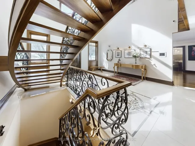 +"PublicRemarks": "Set behind an automated custom wrought iron gate and framed by towering trees, this estate offers resort-style outdoor living and exquisite interior finishes. The front grounds feature a cobblestone driveway with snow-melt, basketball court, courtyard w/ fountain and granite bench. The rear grounds include an infinity saltwater pool w/ waterfall and in-pool seating, flagstone dining area , covered cedar lounge w/ seamless access from the family room, plus a wooded entertainment area w/ fire pit and an upper deck overlooking the property, all backing onto conservation. Inside, a dramatic foyer with 25' cathedral ceiling, four skylights, crystal chandelier, curved walnut staircase, and Crema Marfil marble floors. Walnut floors, custom mahogany doors, and designer lighting flow through the dining and living rooms, the latter w/ deck access. The chef's kitchen offers heated marble floors, Bloomsbury cabinetry, marble counters, Thermador appliances, dual islands, and a built-in Miele coffee station, connecting to the family room w/ floor-to-ceiling fireplace and rear grounds views. Upstairs, the luxurious primary suite features nearly 13' ceilings, a sitting area, fireplace, Juliet balcony, walk-in closet, and 7-piece spa-inspired ensuite with heated floors, freestanding air-jet tub, dual water closets, and glass shower. A secondary primary bedroom w/ cathedral ceilings. Remaining bedrooms include vaulted ceilings ranging approximately from 10' to 12'9". The finished lower level has walk-up access to the yard, recreation room, games room, in-law quarters, , gym/guest suite, secondary laundry Additional highlights: 3.5-car heated garage with workshop and storage closet, Indiana limestone façade, cedar roof with copper accents, Pella windows with built-in blinds, home automation, security system, and indoor/outdoor lighting and audio throughout. Walk to top-ranked St. Theresa CHS and drive to SAC, SAS, HTS, Lauremont, CDS & Villanova."
