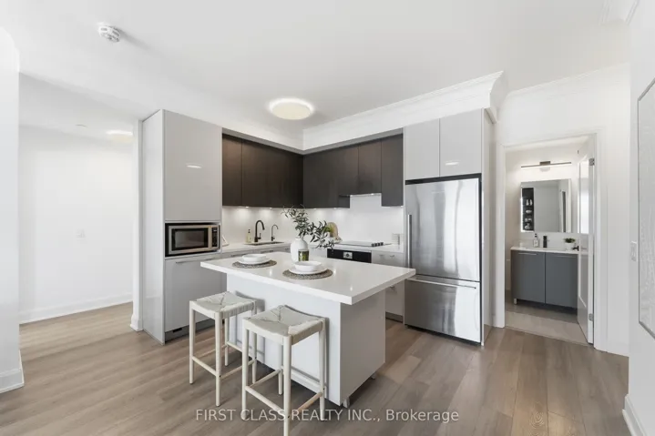 +"PublicRemarks": "Experience refined living in this exceptional 1,139 sq. ft. 2-bedroom + den residence at Riverview Condos - bright, spacious, and exceptionally well laid out. Enjoy floor-to-ceiling windows, soaring 9' ceilings, and a generous 334 sq. ft. west-facing wraparound balcony plus two parking spaces - a rare and valuable inclusion in this building. The modern chef's kitchen boasts a quartz island, premium Jenn Air and Fisher & Paykel appliances, and sleek two-tone cabinetry. Highlights include the sought-after two ensuite layout - both primary bedrooms feature their own private 3-piece bathrooms for superior privacy and convenience. The fully enclosed den, complete with French doors and a closet, functions perfectly as a true third bedroom or a dedicated quiet home office. Thoughtful upgrades include crown moulding, designer roller shades, and upscale fixtures throughout. Low condo fees cover heat, AC, and Rogers internet. Enjoy top-tier amenities: 24/7 concierge, smart parcel system, fitness centre, business lounge, rooftop BBQ terrace, and more. Located in the highly ranked Unionville High School catchment, steps to Whole Foods, LCBO, Downtown Markham, the GO Station, and major highways."