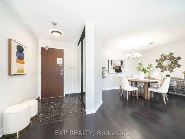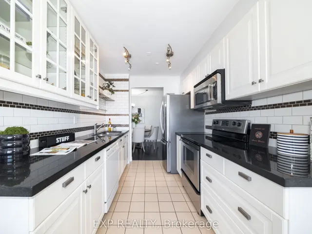 +"PublicRemarks": "Welcome to the prestigious Promenade Towers. This beautifully renovated and spacious suite offers a bright open concept layout with panoramic north west skyline views and exceptional natural light throughout. Featuring quality premium laminate flooring, a renovated kitchen with granite countertops, soft close cabinetry with premium hinges and elegant glass upper cabinets, black countertops, subway tile backsplash, stainless steel appliances, and a generous breakfast area with window, this home blends function and style. The separate formal dining room and sun filled solarium provide flexible living space ideal for entertaining or working from home. Two generous bedrooms include a primary retreat with mirrored his and hers closets and a private ensuite featuring a glass walk in shower. Renovated bathrooms, updated vanities, and clean modern finishes add to the move in ready appeal. This well kept suite also offers ensuite laundry, an oversized exclusive locker for abundant storage, and underground parking. Enjoy resort style amenities including guest parking, outdoor pool, sauna, gym, squash court, tennis court, recreation room, party room, security system, and indoor parking. Quiet yet conveniently located steps to Promenade Shopping Centre, public transit, schools, parks, places of worship, community centre, library, restaurants, and Highway 407. A rare opportunity in a sought after Thornhill neighbourhood that shows beautifully and offers space, layout, and lifestyle in one complete package."