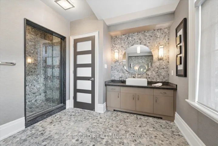 +"PublicRemarks": "**POWER OF SALE** Welcome to this exceptional Greenpark built, Princess Margaret Home in the prestigious Uplands community, just minutes from Thornhill Golf Club. Situated on a premium 100 x 165 ft fully treed lot, this executive residence offers 6,044 sq. ft. above grade plus 2,981 sq. ft. of professionally finished basement space. Boasting 4+1 bedrooms and 6 bathrooms, this home is designed for refined family living and elegant entertaining. The main level features formal living and dining rooms, a spacious eat-in gourmet kitchen, and family room. Step Up to the Mid-Level which offers an Entertainers dream with a second family room complete with a wet bar and two-way fireplace.The expansive primary retreat offers a luxurious 6-piece ensuite, large walk-in closet, and the convenience of a secondary washer and dryer. Additional bedrooms include a private ensuite and a shared Jack & Jill bath configuration.The finished lower level is ideal for entertaining and recreation, featuring a wet bar, gym area, guest bedroom, and generous open space. Step outside to your private backyard oasis with a world-class deck and pool-perfect for summer enjoyment. Conveniently located near top-rated schools, parks, and Highways 407, 400, and 404. A rare offering combining luxury, scale, and exceptional lifestyle appeal."