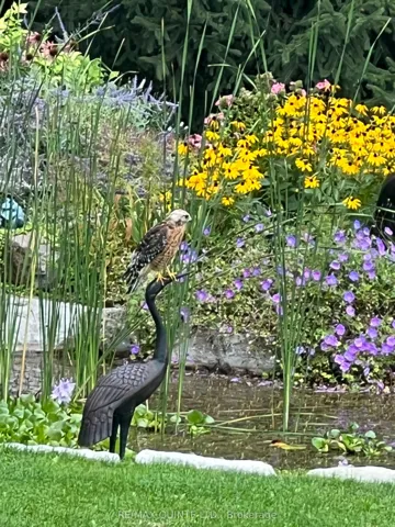 +"PublicRemarks": "Nestled within the prestigious Ballantrae Woods community, this stunning 3,340 sq. ft. custom-built stone home with 4 bedrooms and 5 bathrooms, commands 1.356 private acres of breathtaking park-like grounds. Two beautifully landscaped ponds surrounded by exceptional perennial gardens, mature woodland, and extensive stone walkways and patios; all wrapped in elegant wrought iron fencing, create an outdoor sanctuary that must be seen to be believed. Professionally designed and meticulously maintained, the landscaping alone sets this property apart. Separate fenced areas for kids and pets, plus a well-built play structure, make this backyard as functional as it is breathtaking.Inside, you are welcomed with an elegant foyer, boasting 18' ceilings, marble floors and spectacular chandelier. A gracious upper gallery hall flows between the sleeping quarters, flanked by wrought iron railings that frame sweeping views of the soaring 18-foot ceilings in the foyer and family room below; a dramatic architectural statement that commands attention from the moment you enter the home and create an impressive sense of grandeur. The chef's kitchen features granite countertops, a centre island, chef's desk, pantry cupboards, and limestone floors, flowing seamlessly into a large 3-season sunroom with cathedral ceiling and two walkouts to the stone patios. A coffered ceiling in the grand dining room, main floor office, laundry, and direct access to the 3-car garage complete the main level.The primary bedroom offers a walk-in closet and spa-worthy 5-piece ensuite with jetted soaker tub, glass shower, and marble floors. The finished basement adds a 4-piece bath and an oak and marble fireplace.Key updates and extras include: a brand new roof, Generac whole-home generator, sprinkler system, central air, central vac, owned hot water tank, alarm system, paved driveway, large deck, and play structure. Great country feel - in town. This is Whitchurch-Stouffville living at its finest."