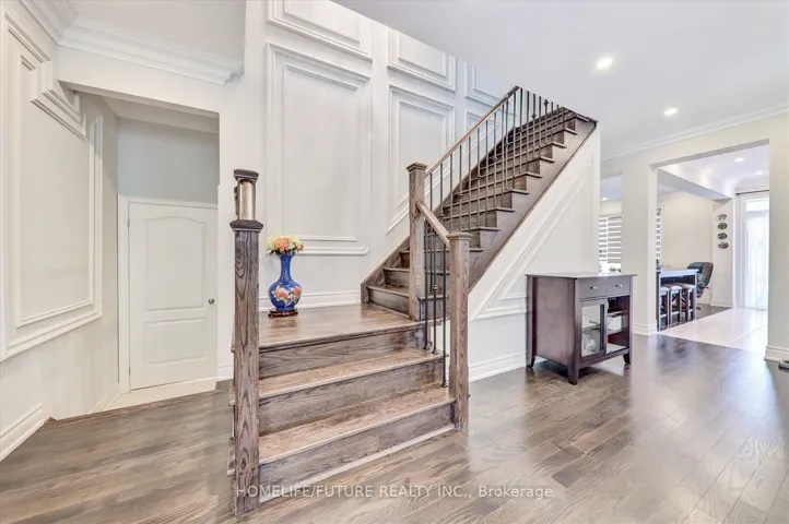 +"PublicRemarks": "Nestled in a highly sought-after, family-friendly neighbourhood, this meticulously maintained 4-bedroom + loft home offers 3,110 sq. ft. of living space on a rare oversized pie-shaped lot. The property features stunning stone landscaping and beautiful curb appeal. The open-concept main floor boasts a formal dining area and a gourmet kitchen with quartz countertops and a walkout to a sun-filled backyard. The inviting family room showcases a cozy gas fireplace, while the bonus main-floor office with a large picture window is ideal for working from home. Hardwood floors, crown moulding, wainscoting, and pot lights are found throughout. The private, fully fenced yard is perfect for relaxing or entertaining family and friends. Located close to all major amenities, including Costco, movie theatres, Upper Canada Mall, restaurants, shopping plazas, and with easy access to Highways 404 and 400."