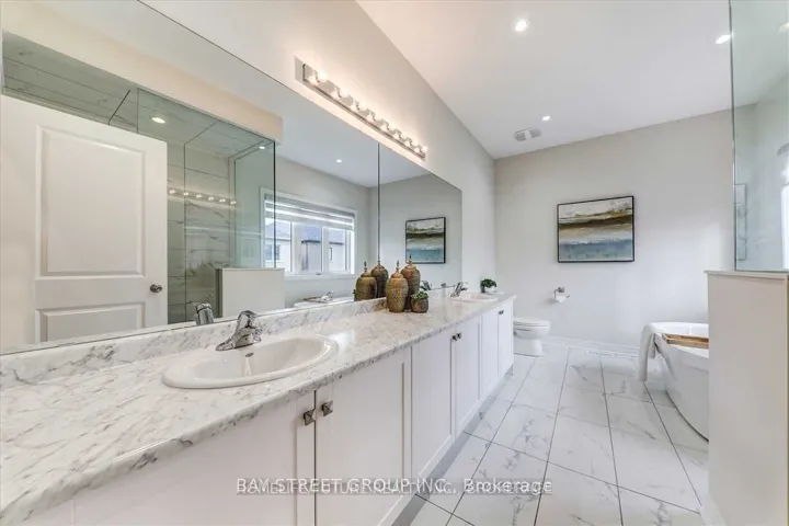 +"PublicRemarks": "This modern and elegant five-bedroom dream home in the heart of Stouffville offers a sophisticated open layout perfectly designed for high-end entertaining and family comfort. The property features a grand double-door entry leading to extensive upgrades, including premium hardwood flooring throughout the main floor, upper hallway, and staircase, complemented by smooth ceilings and polished porcelain tile. The gourmet kitchen serves as the home's centerpiece with its sleek granite countertops, custom center island, and high-end appliances, while a main-floor study provides a quiet, professional workspace. Upstairs, the spacious master retreat boasts a luxurious 5-piece ensuite with a frameless glass shower and a walk-in closet featuring custom built-in shelving, while all additional bedrooms enjoy the convenience of semi-ensuite access and a dedicated second-floor laundry room. Enhanced by professional interior and exterior spotlighting and a separate entrance to the basement for added potential. Perfectly situated directly facing a park and within walking distance to the newly built French immersion school, this residence offers a rare combination of luxury finishes and a prime, family-oriented location near the GO Train."