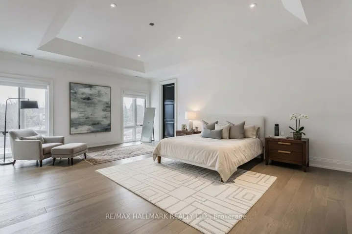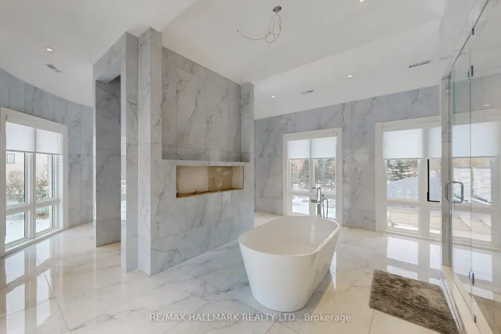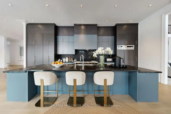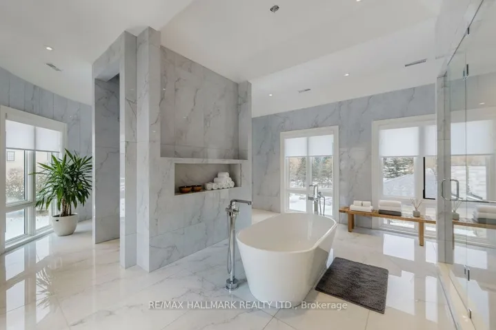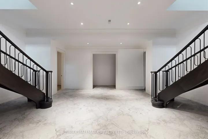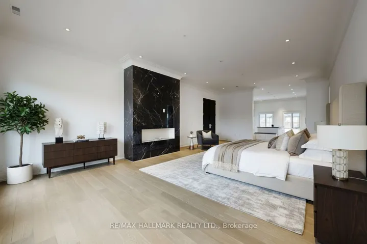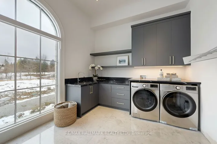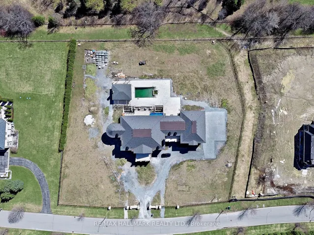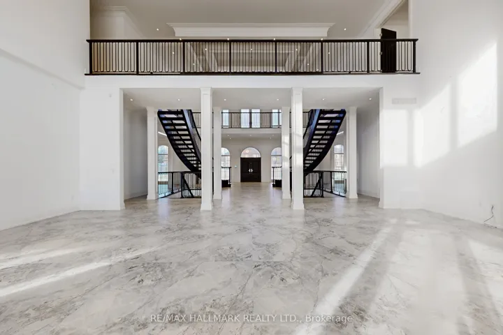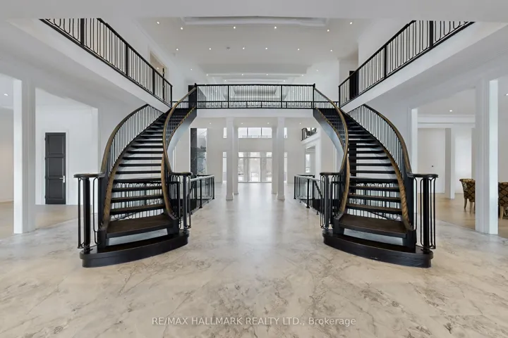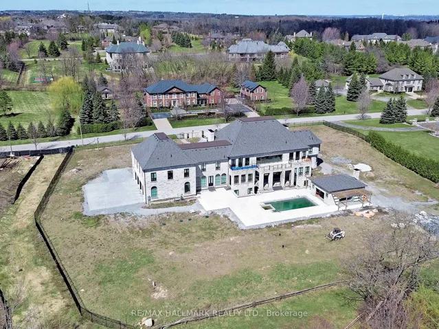 +"PublicRemarks": "Approx. 18,000 Sq Ft Of Custom Architectural Estate Living In Prestigious Fairfield Estates, King Township. This exceptional residence showcases grand scale, refined craftsmanship, and thoughtfully designed spaces throughout. A dramatic two-storey foyer opens to elegant principal rooms, including a formal sitting room, dining room, and a breathtaking great room with approx. 25.5-ft ceilings and floor-to-ceiling windows. The chef's kitchen is complemented by a fully equipped service kitchen and overlooks the backyard, pool, and cabana. The main level offers a private bedroom suite, conservatory/office wing, spacious mudroom, pet wash station, elevator, and main-floor laundry. A 4-car garage inc EV charging, multiple openers, and direct interior access. The upper level features multiple bedroom suites, elevator access, an open gallery overlooking the great room, a library with private balcony, additional laundry, and sitting area with walkouts to balcony. The primary retreat occupies its own wing and includes a boutique-style dressing room with centre island, spa-inspired ensuite with steam shower and soaker tub, and a walkout to the balcony spanning the rear of the home with views of the pool and countryside. The lower level includes a large rec rm with walkout, a music rm, extensive storage, a full kitchen, bedroom suite, movie theatre and a wellness area w/sauna & steam rm. Finished with quartz countertops throughout, hardwood & porcelain flooring, 8-ft doors, multi-zone HVAC, security system, and cameras. Private well and septic. A rare opportunity to own a thoughtfully designed estate offering luxury, comfort, and modern infrastructure!"