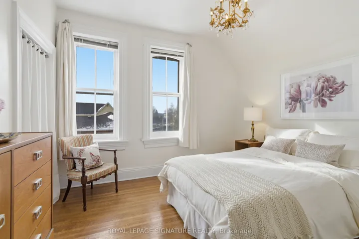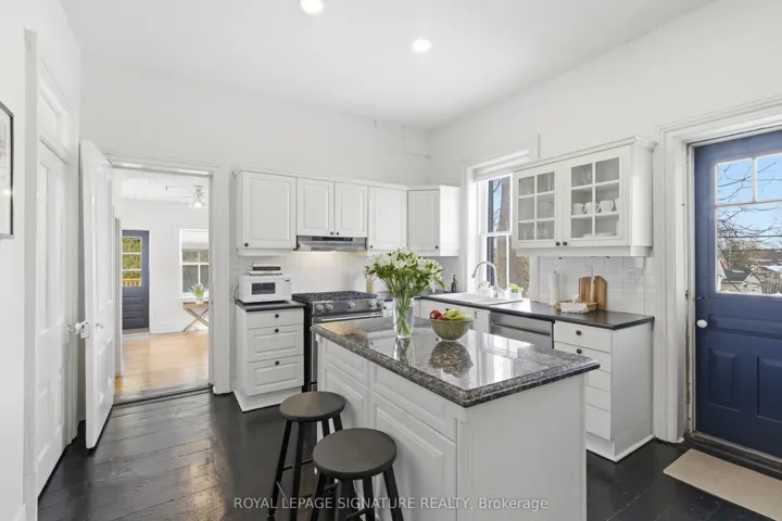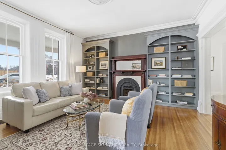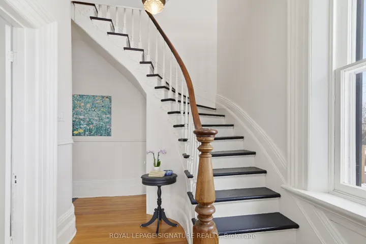 +"PublicRemarks": "This beautifully preserved circa 1880 century home is set on a prominent corner lot along one of the town's most picturesque streets. Offering over 3,200 sq ft, the property balances architectural character with thoughtful modern upgrades, including a newer roof and furnace. Exceptional curb appeal is defined by extensive gardens, a wraparound porch, decorative trim, and classic shutters that speak to the craftsmanship of its era. Inside, a grand foyer introduces a sweeping curved staircase accented by ornate millwork and soaring ceilings. The main floor features 10-foot ceilings and an abundance of original details, including oversized baseboards, period trim, tall windows with transoms, chair rails, and original cold air returns. Six well-defined living spaces offer both elegance and versatility: a formal living room with gas fireplace insert, central dining room, parlour with French doors, warm and inviting kitchen, private office with adjacent bathroom, and a beautifully rebuilt conservatory with original stained glass transoms providing a peaceful, light-filled retreat. The kitchen is anchored by a centre island with granite countertops and stainless steel appliances, and the main-floor office is ideal for a home-based workspace. Upstairs, 9.5-foot ceilings continue the sense of openness. A generous landing offers space for a reading nook. The principal bedroom features an electric fireplace, large walk-in closet with custom organizers, and excellent natural light. Two additional bedrooms are generously sized and complemented by a 3-piece bath with soaker tub and a second 3-piece bath with shower.The dry basement with 8' ceilings provides ample storage space, a washer, dryer, hot water heater (rented), owned water softener, and utility sink. Homes of this calibre and character rarely come to market. A true Uxbridge landmark, offering timeless beauty, thoughtful updates, and a setting that feels both special and welcoming."