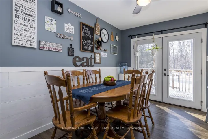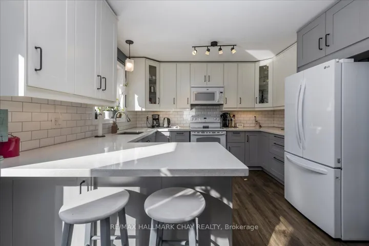 +"PublicRemarks": "Lakeside Living in Innisfil! Beautifully updated 3+1 bedroom, 2 full bathroom bungalow offering approximately 2,302 sq.ft. of finished living space and excellent in-law potential. Situated just minutes from the shores of Lake Simcoe, this home blends comfort, functionality, and a peaceful natural setting. Enjoy ample parking with space for up to 6 vehicles in the driveway plus 2 more in the double garage. The welcoming front concrete patio is the perfect spot for morning coffee or evening relaxation. Inside, a spacious living room provides an ideal gathering space for family and friends. The gorgeous custom kitchen features abundant storage, stone countertops, a backsplash, and flows seamlessly into the dining room-perfect for hosting holiday meals. A double garden-door walkout leads to the back deck, extending your living space outdoors. The primary bedroom is generously sized and offers semi-ensuite privileges, while two additional main-level bedrooms provide comfortable accommodations for children or guests. The mostly finished lower level adds versatility with an additional bedroom, a stylish full bathroom, home office, large recreation room, and a bright laundry room-ideal for extended family or multi-generational living. Step outside to a private, forest-backed backyard complete with a newer deck, fully fenced yard, vegetable garden, and concrete patio, creating a serene outdoor retreat. KEY UPDATES: Custom Kitchen, Basement Bathroom, Back Deck & Concrete Patio, Air Conditioner, Garden Doors, Front Door, and Fresh Paint. Surrounded by marinas, golf courses, parks, and essential amenities, this lovely home offers a tranquil lifestyle while remaining close to everything you need. Whether you're seeking a peaceful lakeside retreat or a flexible home for extended family, this property truly delivers."