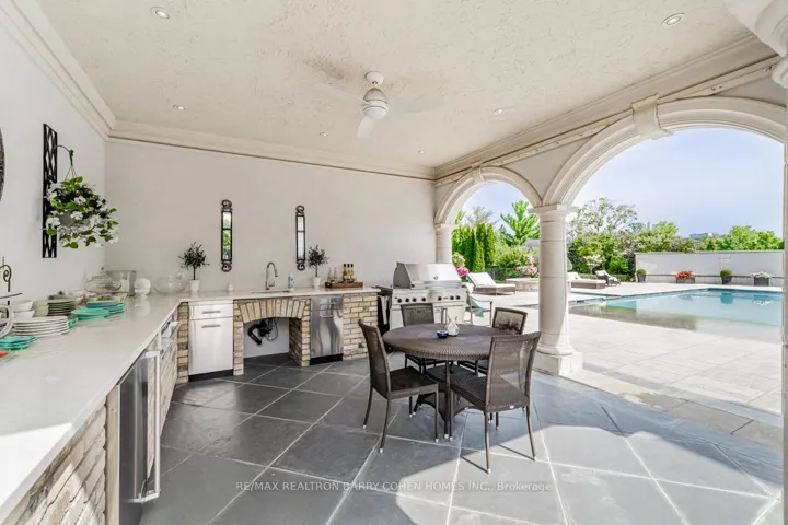 +"PublicRemarks": "This sprawling, classically designed mansion has a gated front entrance to a circular courtyard with formal gardens with over 10,000 Sq-ft liveable area combined "Lower & upper levels" and lot size of 100 ft X 302 Ft, back to the Prestigious"Thornhill & upland Golf Club" Professionally Interior Designed & Furnished - 6+2 Bedrooms,9 Washrooms- Showcasing A Grand Cathedral Foyer, Magestic Archways And 11 Ft Ceilings with Elevator, Multiple Walk-Outs To Terraces & Enclosed-Veranda Overlook The Backyard Retreat & Swimming Pool Oasis, professional landscaping, heated driveway and surrounding wrought iron fencing with an entrance gate, Kitchen highlights include a hardwood floor, granite counters, a large centre island/breakfast bar with an integrated sink, a pantry, pot lights, a detailed decorative ceiling, custom backsplash, high-end stainless steel appliances, a built-in desk, arched windows, and a sliding door walkout to a covered patio. Off the kitchen is a covered outdoor loggia in Italian with a wood-burning fireplace. The living room features a hardwood floor, crown moulding, a wood-burning fireplace with detailed plaster surround, a ceiling medallion and chandelier, and two arched double garden-door walkouts. In the dining room, highlights include a hardwood floor, crown moulding, a chandelier and two arched windows. The office features rich wood walls, a coffered wood ceiling, wall sconces, floor-to-ceiling built-in shelves, and two double-door walkouts to the front. The backyard has a covered patio, an inground pool, a three-piece bathroom, a cabana, an inground hot tub, a large lanai with a wood-burning fireplace, an outdoor kitchen with stainless steel appliances and a dining area, fountains, gardens, a potting shed, and lawn space. The lower level wine room, a 700-bottle wine cellar, features cabinetry, counter space, exposed brick walls and ceiling, a tile floor, a games room and a soundproof movie theatre.3-car garage and 12 parking spaces."