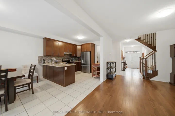 +"PublicRemarks": "Beautiful and well-maintained semi-detached home offering approximately 2,200 sq ft of living space in a great family-friendly neighbourhood. This spacious property features 4 generous bedrooms and a bright, open-concept main floor with hardwood and ceramic flooring throughout the main level. Elegant oak staircase leads to the second floor, where you will find the convenience of a second-floor laundry room.The large primary bedroom offers a walk-in closet and a luxurious 5-piece ensuite, perfect for comfortable living. Enjoy plenty of natural light throughout the home and a functional layout ideal for families. Exterior features include no sidewalk, allowing for parking for 2 cars in the driveway plus 1 in the garage. Located close to parks, schools, and all amenities, this home shows pride of ownership and is move-in ready."
