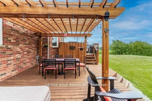 +"PublicRemarks": "Welcome to 9 Apple Valley Lane - an extraordinary custom-built estate nestled on 2.83 acres of pristine landscape in one of the area's most prestigious communities. This exquisite raised bungalow showcases 9-foot ceilings and an airy open-concept design that blends timeless sophistication with everyday functionality. A grand front entrance welcomes you into a light-filled foyer flowing seamlessly into a formal dining room featuring a soaring 14-foot cathedral ceiling and a majestic Palladian window. The heart of the home is the gourmet kitchen, beautifully appointed with granite countertops, stylish backsplash, custom cabinetry, a walk-in pantry, and a walkout to a stunning multi-tiered deck -truly an entertainer's dream. The expansive living room is anchored by a cozy fireplace, framed by rich hardwood floors and pot lights, with effortless sightlines connecting every principal space. Retreat to the luxurious primary suite featuring a spa-inspired 5-piece ensuite and a generous walk-in closet. Two additional bedrooms offer large windows, tall ceilings, and plush carpeting(2022).The fully finished lower level delivers exceptional versatility, offering: A sprawling recreation room with a custom English-style bar, built-in shelving, and dedicated entertainment space A separate gym with wall-to-wall mirrors A private home office/library with custom cabinetry A complete in-law suite with full kitchen, living area, bedroom, and 3-piece bath The heated 3-car garage is a showpiece of its own, featuring epoxy floors, built-in cabinetry, wash basin, and a 2-piece bath in the third bay. Professionally landscaped grounds showcase mature trees, open green space, and breath taking sunset views - your own private retreat .Peace-of-mind upgrades include: Roof (2022)Driveway (2020, resurfaced 2021, 2023, 2025)Hot Water Tank (2025)Furnance (2025)Water Softener (2026)Water Pressure Tank(2026)Luxury. Lifestyle. Legacy. Welcome Home."