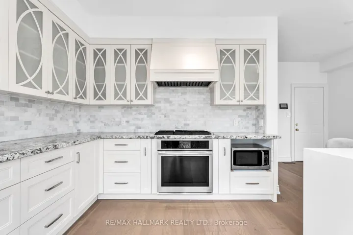 +"PublicRemarks": "Exceptional ravine-backing detached residence in the prestigious Oak Ridges community, offering refined luxury, privacy, and timeless appeal. Extensively renovated in 2025, this sophisticated home showcases a reimagined open-concept layout with wide-plank hardwood flooring, smooth ceilings, bespoke entertainment centre, and curated designer finishes throughout the main and second levels.The main floor presents elegant, light-filled principal rooms with pot lights and a statement chef's kitchen featuring custom cabinetry, an oversized waterfall quartz island, and premium Jenn-Air and Bosch appliances. Enjoy uninterrupted ravine views from the family room or step out to the glass-railed deck and stone patio for seamless indoor-outdoor living.The upper level offers four generous bedrooms and three spa-inspired bathrooms, anchored by a luxurious primary retreat with fireplace, custom walk-in closet, and a refined ensuite. The finished lower level provides expansive recreation spaces, a full bath, and a versatile multipurpose room ideal for executive office, guest suite, or additional living quarters.A truly rare offering delivering elevated design, natural serenity, and executive living in one of Oak Ridges' most exclusive enclaves."