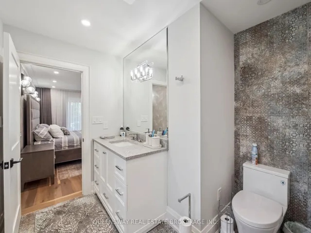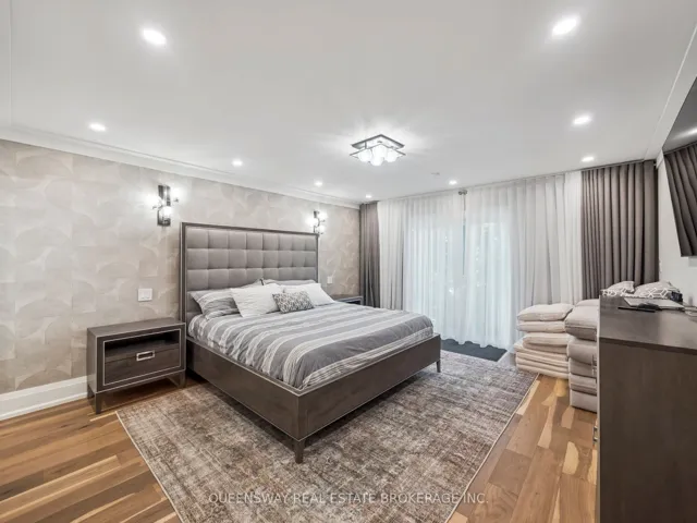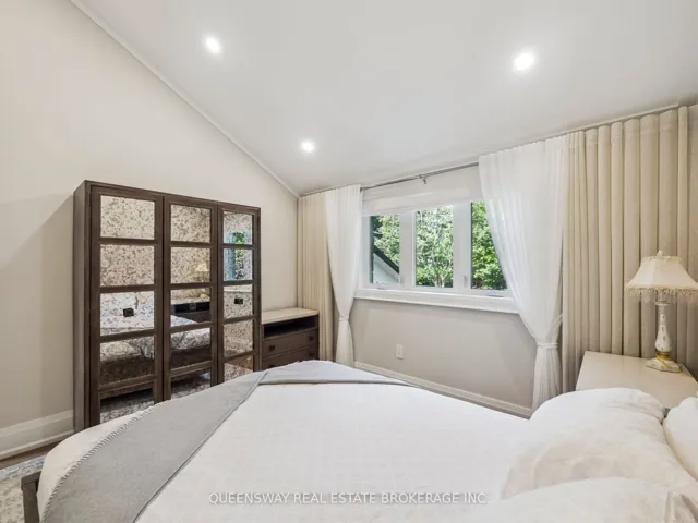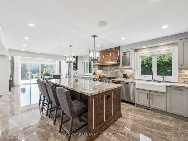 +"PublicRemarks": "Elegant 5-bedroom residence set on a generous 100' x 160' lot along a quiet, tree-lined street just south of Lakeshore. The thoughtfully designed main floor features formal living and dining areas, a private home office, and a convenient main-floor primary suite. The chef-inspired kitchen is equipped with premium appliances, a spacious island, and opens to a bright breakfast area framed by large windows and refined ceiling details.Upstairs offers four well-proportioned bedrooms, two full bathrooms, a second-floor laundry room, and a versatile bonus space ideal for a home office or playroom. The finished lower level provides additional living space, including a recreation room, fitness area, and wine storage.The landscaped backyard is perfect for entertaining, complete with a covered cabana for outdoor enjoyment."