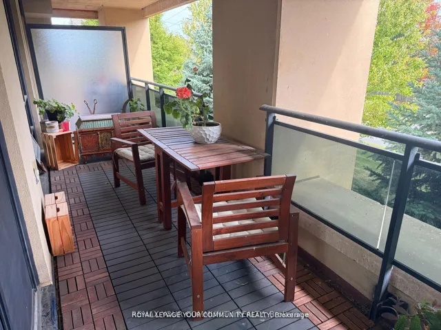 +"PublicRemarks": "Stylish 1 + den (Den is big enough to be used as 2nd bedroom) condo with 2 full baths, thoughtfully designed open concept,9' ceiling, south facing with natural light and walk-out to large "108 Sq Ft Terrace with a drain" to enjoy when the weather allows. "Upgraded engineered hardwood floor throughout" by the builder. Located steps from TTC, top-rated schools, Promenade Mall, Center Point Mall & other amenities. This home offers comfort with exceptional convenience, maintenance fee includes water, heat. Includes premium amenities such as fully equipped gym, party rm, 24hr security on the weekends, billiard rm, TV room, library & guest room. Unit is tastefully painted (modern) with modern light fixtures. Extra large, private locker & very convenient parking spot in P1, close to the elevator. The unit offers style, comfort & convenience."