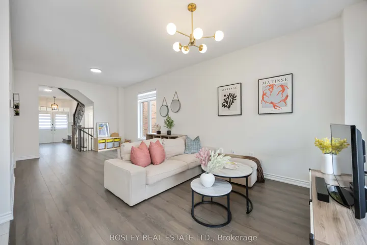 +"PublicRemarks": "Beautiful built semi-detached home situated on a premium pie-shaped lot in a family-friendly neighborhood. Double door entry welcomes you into a bright open-concept living and dining area with 9-ft ceilings on the main floor and upgraded laminate flooring throughout the main level and upper hallway. The modern eat-in kitchen features a center island, upgraded granite countertops, stainless steel appliances, and luxury cabinetry, overlooking a spacious breakfast area. The second floor offers 3 generous bedrooms and 3 bathrooms, including a large primary bedroom with an oversized ensuite and frameless glass shower. Perfect for young families and couples starting a new chapter, located in a safe, kid-friendly community within walking distance to schools and playgrounds, and just minutes to shopping, restaurants, community centre, and Highway 400. The unfinished basement provides endless potential-create your dream recreation room, home gym, kids' play area, or design the space to suit your lifestyle. Almost new, stylish, and move-in ready - a fantastic opportunity to grow your family in a wonderful neighborhood. ****200 amp ***** New main floor Laminate installed 2025 ****Modern Light Fixtures **** 2nd Floor Laundry! ***** Newly Fenced Back Yard ****New Modern Light Fixtures**** ****Less than 5 years old****"