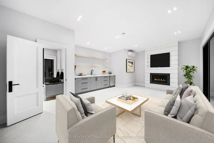 +"PublicRemarks": "This newly built modern custom home offers over 5000 sqft. of lavish living space. Whether you're commuting, enjoying the outdoors, or raising a family, this location on a quiet street of Oakville offers the perfect balance of convenience and lifestyle. This elite modern home is design and built by Zarina Construction. As you step through the oversized front door, you're welcomed by a dramatic 23-ft foyer with heated Italian tile flooring that flows through the main level. The main level features a private home office, an elegant living room with a stunning marble, wood, and mirror accent wall, and a breathtaking open-to-above family room. Anchored by a custom diamond-pattern feature wall and a double-sided Dimplex fireplace, large windows, this space is the heart of the home -open, bright, and welcoming.The gourmet kitchen is a chefs dream, offering a spacious island, custom cabinetry, and built-in Miele appliances. A separate spice kitchen keeps bold flavors contained and the main kitchen spotless. The layout flows seamlessly into a formal dining area with a walkout to the fully fenced backyard.Upstairs, you will find four generous bedrooms, each with its own ensuite bathroom featuring custom floating vanities, integrated sinks, heated tile flooring, and calming finishes. The primary suite is a luxurious retreat with a custom walk-in closet and a spa-like 5-piece ensuite with a freestanding tub, curbless shower, and dual vanities. A laundry room on this floor adds convenience.The finished basement offers 11.5-ft ceilings, a bright open rec area, a second kitchen, two bedrooms with a shared bath, and for the ultimate movie night experience, there's a dedicated theatre room fully equipped with 4 dedicated speakers for a true cinematic experience. This home also includes 16 built-in speakers throughout. With a basement walkout and large windows bringing in natural light. This home is a reflection of modern luxury tailored to your lifestyle."