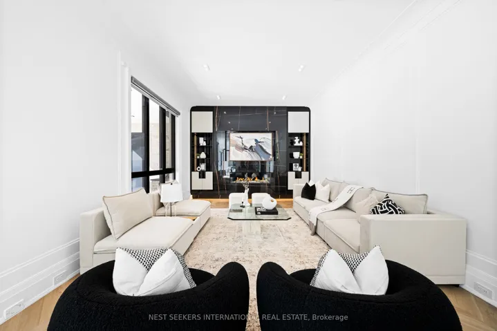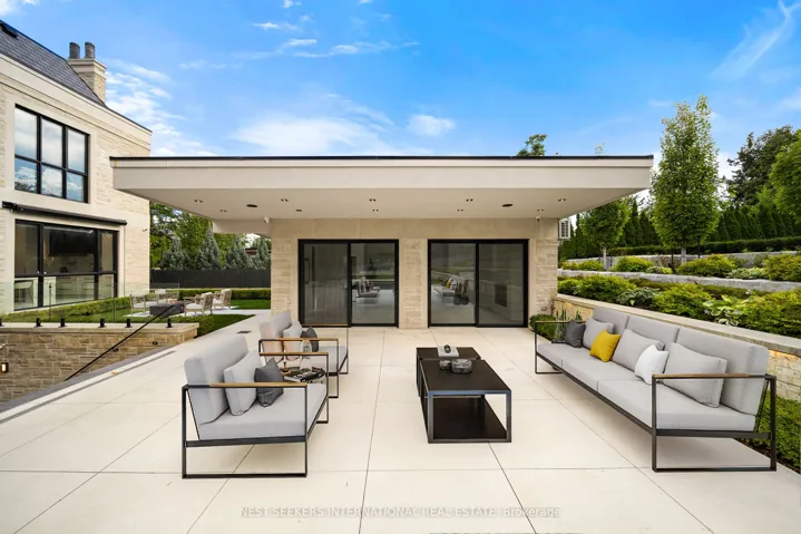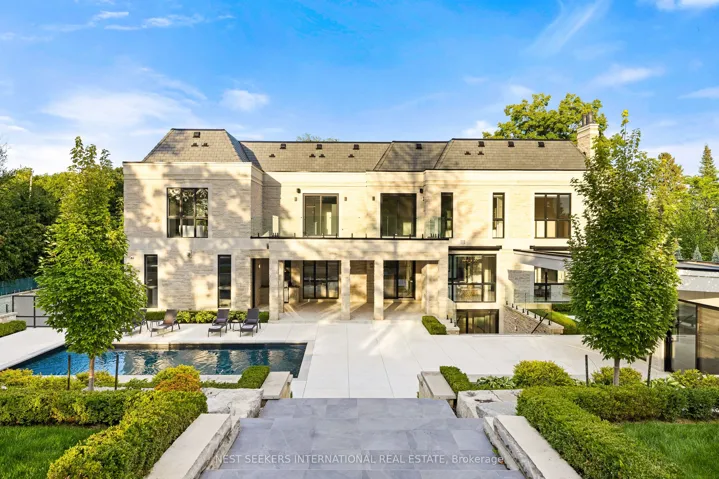 +"PublicRemarks": "Welcome to this breathtaking French château-inspired residence in the heart of Woodbridge, where timeless European elegance meets modern luxury. Set on a landscaped lot, this approx. 10,000 sq ft limestone masterpiece was crafted by Stonebrooke Homes in collaboration with designer Marin Zabzuni, featured in Living Luxe and Dolce Magazine. His signature style blends refined luxury with warm transitional design inspired by the world's most iconic five-star hotels. Inside, oversized windows and skylights fill the home with natural light, highlighting architectural millwork, polished Ciot stone, suede accents, and 7" chevron white oak floors. This exceptional home offers a 5+1 bedroom layout, including four ensuite bedrooms and a luxurious primary retreat with spa bath, Aquabrass fixtures, and a private 1,000 sq ft terrace. An additional upper lounge provides flexible space, easily converted into a fifth bedroom if desired. The walk-out lower level is designed for entertaining, featuring a theatre room with 120" screen, gym with steam room, and a kitchenette with pantry, ideal for nanny or in-law quarters, with direct access to the backyard pool. The Art Deco-inspired kitchen includes an oversized fluted hood, Miele and Sub-Zero appliances, and a striking central island. Control4 smart home technology and a private elevator connect all levels. Outdoors, enjoy a 16 x 32 saltwater pool, cabana with wet bar and bath, outdoor kitchen, firepit lounge, and lush gardens. Heated terraces, snowmelt driveway, four-car garage, dual laundry, safe room, and automated blinds complete this exceptional offering"