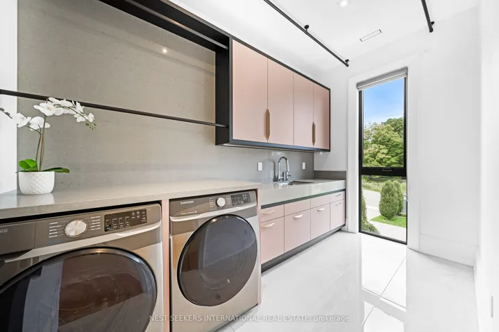 +"Inclusions": "Control4 smart home automation with smartphone access, security cameras, automated blinds, Sonos audio, LED feature lighting, custom ceiling mouldings, architectural millwork with inlaid mirrors & suede panels, radiant heated floors (main, lower & all washrooms), snowmelt driveway/terraces/walkways, automated awnings, wine display & cellar, home theatre with 120 screen, gym with steam room, nanny/guest suite, dual laundry rooms, walk-in safe room, EV charging, epoxy garage with lift-ready 4-car capacity, Miele & Subzero appliances, saltwater pool with cabana, outdoor kitchen with BBQ, gas fire pit, professional landscaping with irrigation & lighting."