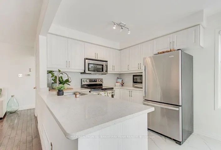 +"PublicRemarks": "A Must SEE !!! Welcome To This Beautiful Modern Design Freehold Townhouse!! Enjoy peaceful greenbelt views from the east side of the house, enhanced by a stunning picture window that fills the space with natural light..* Features Functional Layout, Open Concept & Sun-Filled Kitchen W/ Centre Island, Granite Counters Top, Gas Stove & Ss Appliances, Hard Wood, Pot Lights, 9 Feet Ceiling On Main, Smooth Ceiling, 2nd Floor Family Room. *Walking Distance To School, Park, Close To Public Transit, Super Market, Community Centre, Hospital, Hwy407 & Much More!"