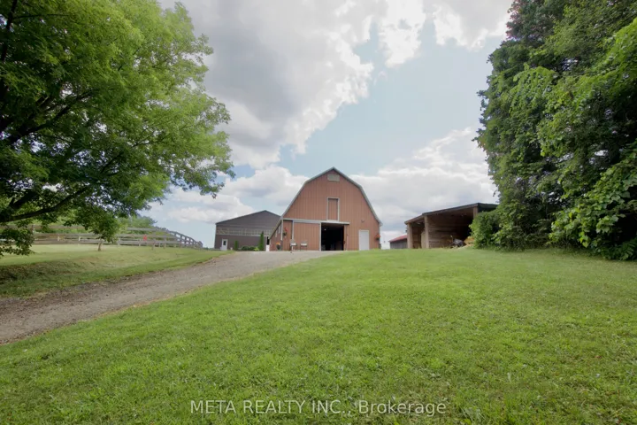 +"PublicRemarks": "Charming 10-Acre Horse Farm with Modern Home, In-Law Suite & Premium Equestrian Facilities Discover the perfect blend of rural charm and modern comfort on this picturesque 10-acre horse farm, just 10 minutes from Highway 400. Thoughtfully designed for the serious equestrian, the property boasts a beautiful barn with eight 10' x 10' stalls, a heated tack room with hot and cold water, and underground water lines to the pastures for ease and convenience. Ride year-round in the 60' x 106' indoor arena or enjoy the open air in the outdoor riding arena. Six acres of lush, fenced pastures provide ample grazing space for your horses, while included farm equipment ensures you can step right into managing and maintaining the property with ease. The home has been tastefully updated, featuring a modernized kitchen and bathrooms that blend country warmth with contemporary style. It offers a private one-bedroom in-law suite, ideal for extended family, guests, or staff. Surrounded by mature trees and set well back from the road, the residence offers a peaceful sense of privacy rarely found so close to major routes. A spacious deck extends your living area outdoors perfect for relaxing or entertaining while taking in the fresh country air. Whether you're training, boarding, or simply living your equestrian dream, this property delivers exceptional facilities, thoughtful amenities, and a prime location."