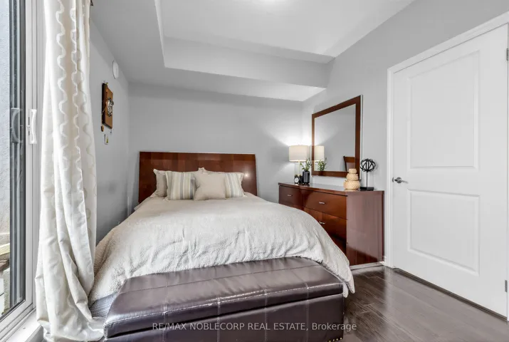 +"PublicRemarks": "Welcome to this stunning sun-drenched corner unit offering the perfect blend of space, style, and convenience. This beautifully maintained 2-bedroom, 2-bathroom condo features an exceptional layout with floor-to-ceiling windows throughout, filling the home with natural light and showcasing unobstructed south-facing views. Designed for both comfort and entertaining, the unit boasts a massive private terrace with walkouts from the primary bedroom and living room-ideal for relaxing or hosting guests-along with a second balcony off the additional bedroom. The kitchen is equipped with stainless steel appliances, a large granite slab countertop, and ample cabinetry, while the dining area is enhanced with a custom built-in, providing both charm and valuable extra storage. Enjoy the convenience of an ensuite laundry, two underground parking spaces, and a dedicated locker! Located in a highly desirable area, this condo is just minutes from major highways, Market Lane, shops, restaurants, and everyday essentials. Public transit is right at your doorstep, with proximity to the subway, library, and recreation centre. Residents also enjoy access to premium building amenities, including a gym, visitor parking, party room, rooftop terrace, and sauna. A rare opportunity to own a bright, spacious, and well-appointed home in a prime location-this one truly has it all!"