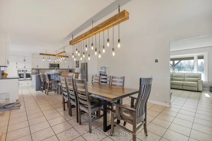 +"PublicRemarks": "Exceptional 118-acre working farm just minutes from the thriving town of Alliston, offering a rare combination of agricultural income, multigenerational living, and business potential. Currently operating as a bison and Texas Longhorn cattle farm, this property is well-equipped for livestock or expanded agri-business use. Two custom homes provide flexible living options. The main residence features a spacious eat-in kitchen with walkout to a landscaped yard and in-ground pool, multiple living areas, main floor primary bedroom, office, and five additional bedrooms upstairs. The finished walkout lower level includes a recreation room, kitchenette, and bath. A second walkout bungalow (1998) offers 2+3 bedrooms, ideal for extended family or income potential. Extensive infrastructure includes 800-amp service and a 10k W micro FIT solar system generating approx. $10,000/year. Farm buildings include six grazing sheds (32' x 360'), a 130' x 50' shop (approx. 40% cold storage) attached to a 50' x 80' building (approx. 90% cold storage), a 40' x 100' coverall, multiple run-in sheds, and a large bank barn with retail/event potential and possible living quarters, plus lower-level equestrian setup. Approx. 80 workable acres, with portions currently in pasture. A turnkey farm with scale, versatility, and long-term opportunity in a prime location."