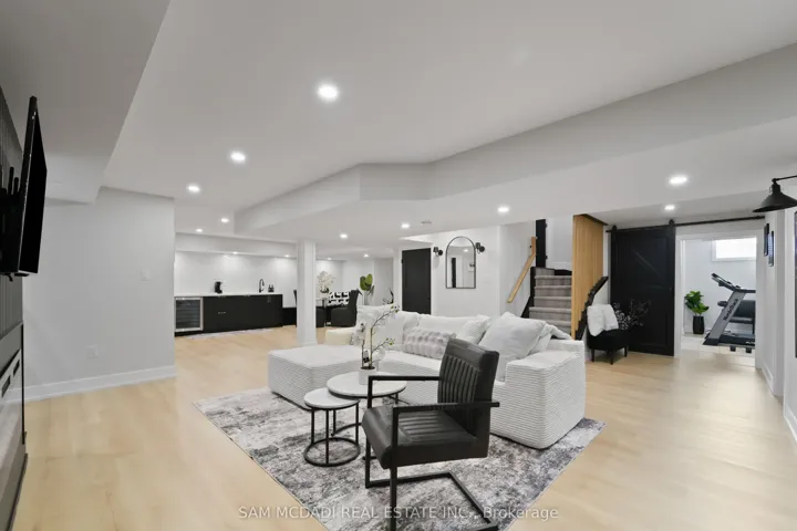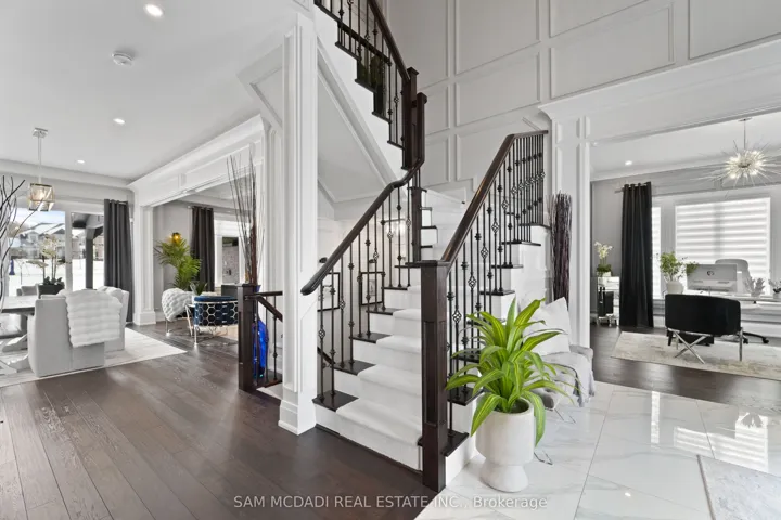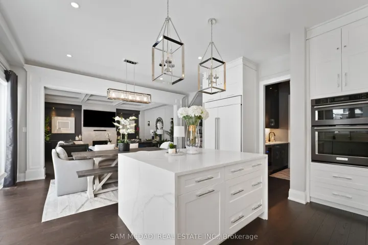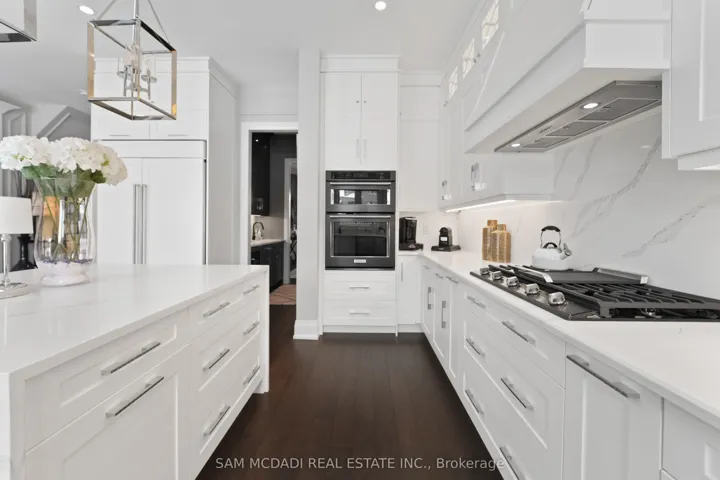 +"PublicRemarks": "A very rare FURNISHED, truly turn key home. Step into exceptional craftsmanship and timeless design in this beautifully styled residence on nearly a half acre offered !!fully furnished!! - move-in ready with the stunning existing furniture. Approximately 4,500 sq ft of impeccably finished living space showcases 10' main-floor ceilings, 8' interior doors, and extraordinary millwork: generous trim, intricate moldings and custom woodworking throughout that reflect attention to detail unlike any home you've seen. Entertain and live luxuriously on the main level where a tucked-away office provides quiet work space and a chef's kitchen anchors the home. The kitchen features custom cabinetry with bespoke hardware, built-in appliances, an impressive waterfall quartz center island and quartz backsplash. It opens to a great room with built-in shelving, an intricate coffered ceiling and a showpiece fireplace and mantel. An accessory butler servery with wine fridge and sink makes hosting effortless. A very stylish separate dining room offers crown molding, chic wallpaper and wainscoting. Upstairs offers four bedrooms including the primary suite with a spa-like 5-piece ensuite and generous walk-in closet, two additional full bathrooms, and a striking bedroom with a 12' vaulted ceiling - bright, airy and refined living spaces designed for comfort and style. The lower level, with separate entrance, is ideal for guests or an in-law/nanny suite: kitchenette, bedroom, full bathroom and a large rec room anchored by a beautiful fireplace. Outside, the expansive nearly half-acre lot has inground sprinklers, a gorgeous covered porch with lighting, hot tub, stone facade wall with a fireplace and mount for a TV perfect for entertaining. Offered with the curated furniture and finishes that make this house a turnkey show-home."