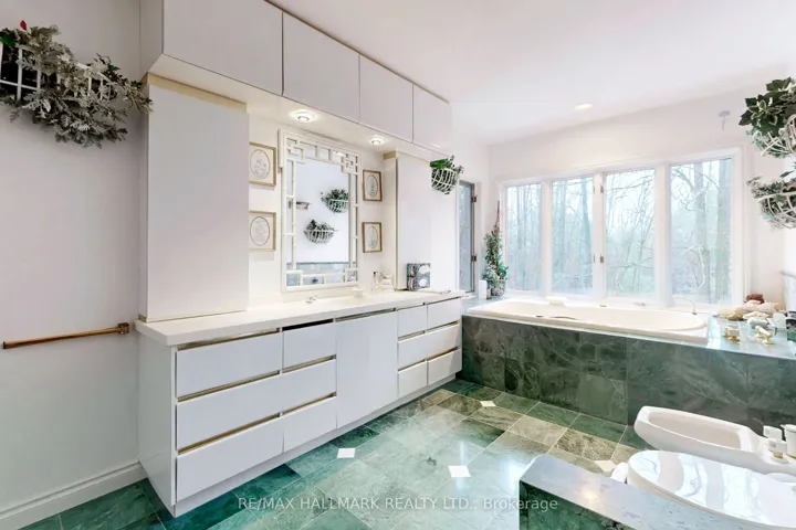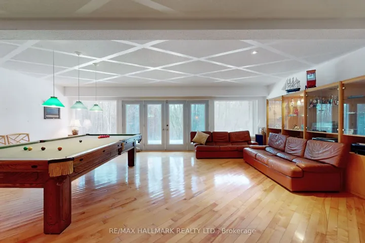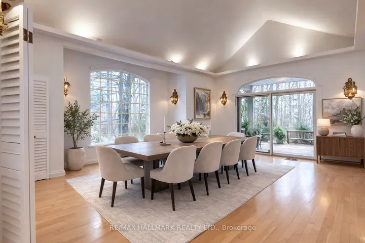 +"PublicRemarks": "Situated On Nearly 5 Acres of Private Wooded Landscape, This Impressive 4 Bedroom Bungalow Offers Over 6,000 Sqft of Total Living Space, Full Walk-Out Lower Level, 4 Car Garage & Oversized Detached Workshop! Step into the dramatic great room, which showcases soaring vaulted ceilings, a striking palladium window that fills the space with natural light and overlooks the surrounding trees and nature. A floor-to-ceiling fireplace with ornate carved mantel anchors the space,while wall sconces and recessed lighting add warmth and ambiance. Multiple walkouts connect the interior to an impressive 120-foot deck that wraps around the home, creating seamless indoor-outdoor living. The open-concept kitchen overlooks the great room and breakfast area and is equipped with granite countertops, extensive cabinetry, a large centre island, built-in wall oven, cooktop, integrated refrigerator, and built-in dishwasher. The adjacent dining area features oak hardwood flooring, vaulted ceilings, recessed lighting, wall sconces, and a large picture window framing tranquil views of the property, with a walkout to the deck.The home offers spacious bedrooms with sitting areas and abundant natural light, while the primary ensuite includes natural stone finishes, a corner bathtub, and a glass shower. Additional functional spaces include a main floor laundry with garage access, widened staircase with glass railing to the finished lower level, and flexible rooms suited for recreation or meeting space. Outside, enjoy the interlocked courtyard, massive covered deck, stone wall front entrance, 4-car garage plus an approx. 1800 sqft detached workshop. This architecturally distinctive home offers privacy, generous living space, and a rare opportunity to enjoy a country estate setting just minutes from town, Highway 404, GO Transit, golf courses, parks, and everyday amenities. Don't miss out on this opportunity!"